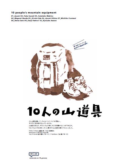 第ニ特集は「10人の山道具」。どんな靴を履いて、どんなバックパックを背負い、その中に何を詰め込んでいるのか。山道具を見るとその人の山の楽しみ方を想像することができます。10人の山の向き合い方と、愛用する道具を教えてもらいました。