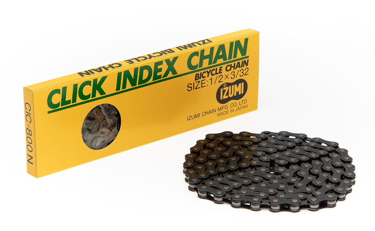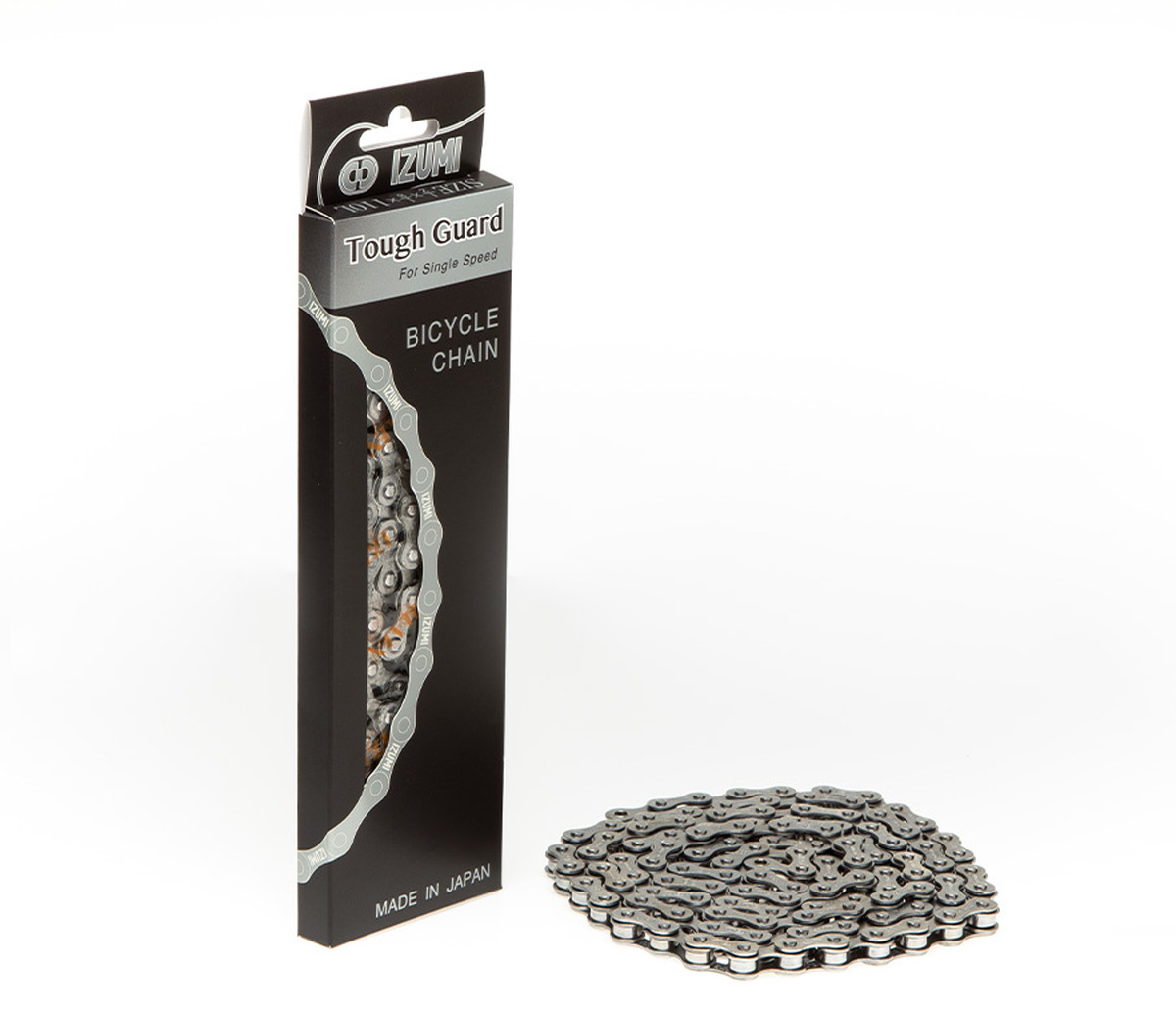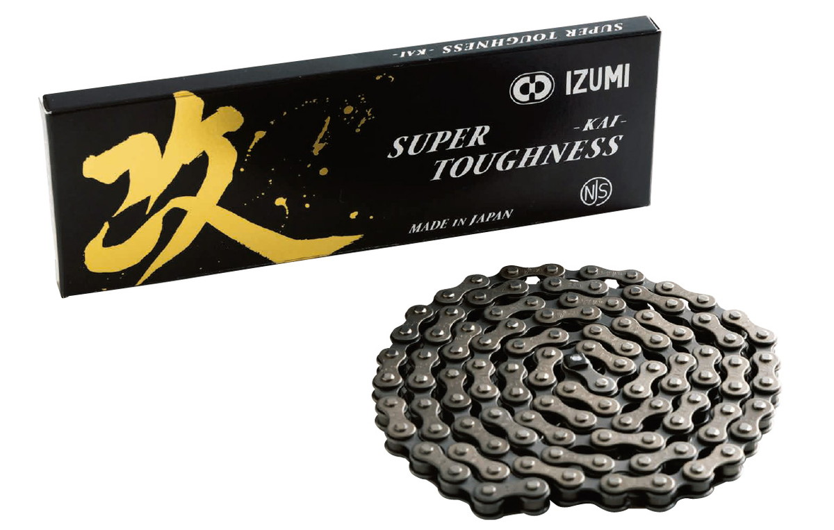 競輪やトラック競技選手から長年愛されてきたシングルスピードチェーン。競輪競争で使用できる証、NJSの認定を受けている。耐久性が高いことや、耐摩耗性のあるピンが使われていることから、ハードユースが想定されるストリートシーンでも愛用するライダーが多い。また、トラック競技やBMXライダーの一部から、より耐摩耗性の高い1/2×3/32の薄刃モデルにも強い要望があり、2つのサイズ展開がされている。