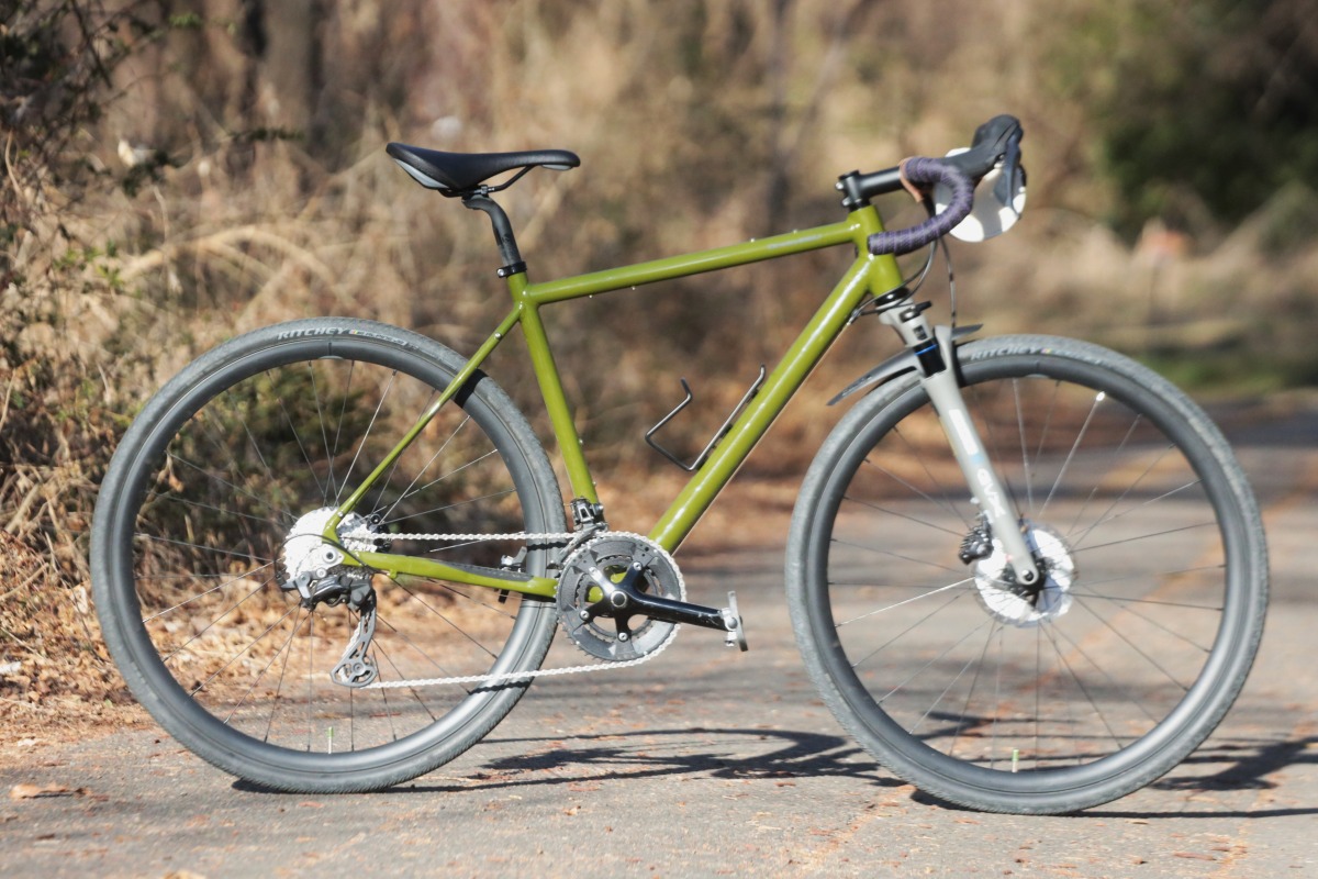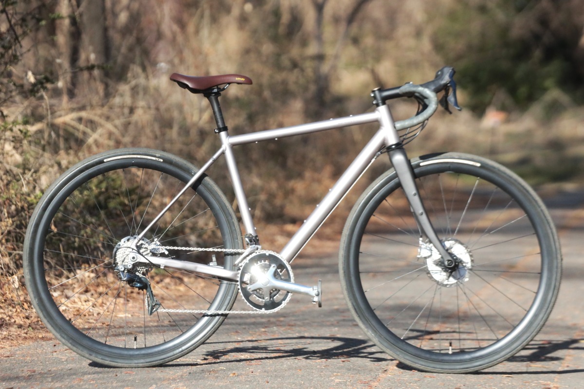 オフロードを視野に入れた金属フレームにしては軽いのに運動能力は価格から想像するよりずっと高く、手の込んだ潰し加工が施されたリアセクションの効果か、振動吸収性はアルミにしては高い。大径アルミらしいしっかりとした剛性感と軽やかなハンドリングでラフな路面を嬉々として踏破し、凹凸に弾かれてリアが暴れてどうしようもないという事態には陥らない。サスペンションフォークを入れると肩下寸法が30mmほども変わるのでハンドリングは変化するが、破綻までは至らず、どちらの仕様でも楽しめることには驚いた。「自由に使い方を考えてほしい」と上司さんが言うように、メーカーが使い方を決めてしまうのではなく、ユーザーに委ねてしまうところが面白い。フレーム単体で約10万円と安価なのに、「遊び方を考えさせてくれる」という貴重な一台である。