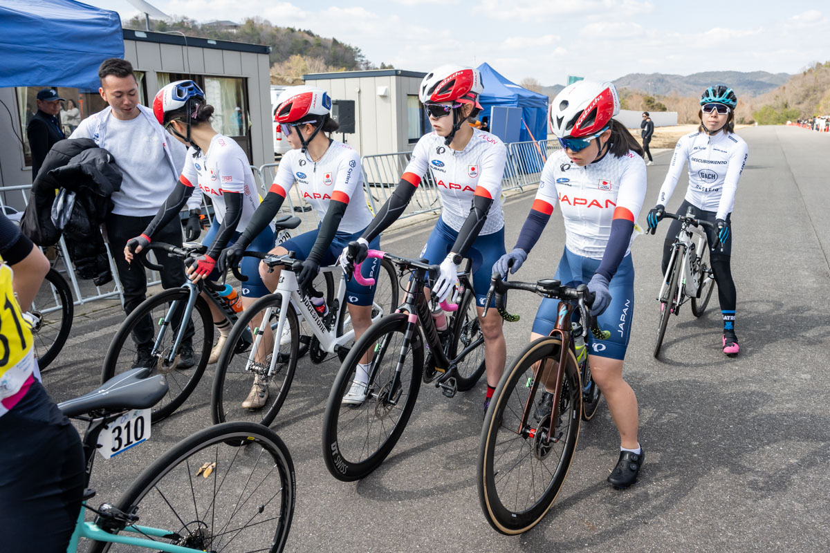 A-Eに続き、こちらにも直前まで強化合宿を行っていたというジュニアおよびユースカテゴリのJCF強化指定選手たちが参戦。A-Eとは異なり、A-Fでは強化指定選手たちも表彰対象となるため、レースにどのような影響を及ぼすのか注目された。昨年の全日本選手権ロード・女子マスターズで優勝を果たし、本レースではチャンピオンジャージを着用しての出走となった河田朱里(lnfinity style)をはじめ、20名の選手たちがスタートラインにつき、13時59分にスタートが切られる。