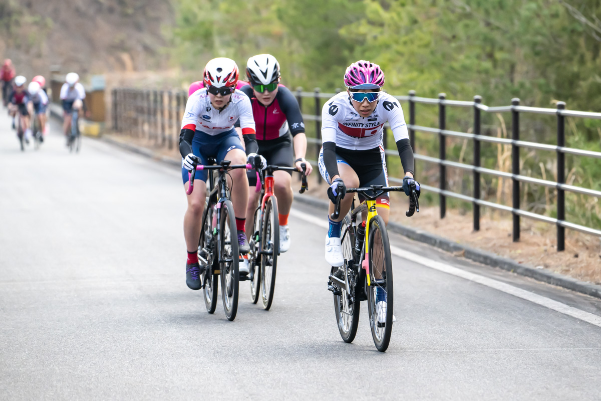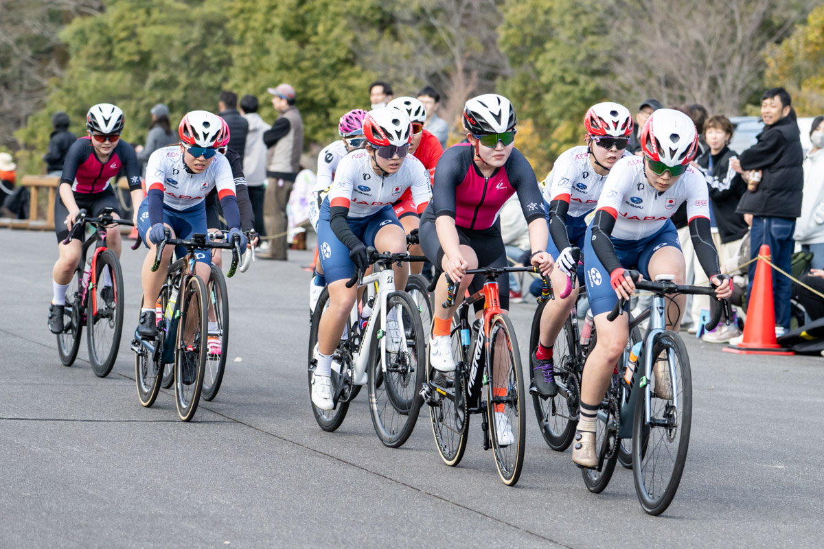 序盤は前日に開催された九州チャレンジサイクルロードレースで2位に入った小田恵利花(スミタ・エイダイ・パールイズミ・ラバネロ)や河田が積極的にレースをコントロールする中、ジャパンナショナルチームの選手たちや安達心晴(九州学院高校)が何度もアタックを仕掛け、直前まで開催されていたアジア選手権でのトラック競技で銀メダルを獲得し、大会2連覇を飾っている西原夕華(北桑田高校)らの脚を削っていく。