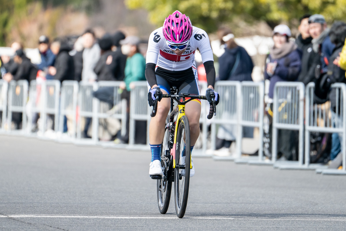 メイン集団が牽制状態となったこともあり、永井は単独で展望所への上り区間を終え、追走の生天目隼人、山田も永井の姿が見える状態で下り区間へと入る。永井がホームストレートに姿を見せると、そのすぐ後ろには追走の2名、さらにはメイン集団が迫るものの、永井はそのまま独走でガッツポーズを上げながらフィニッシュラインを通過、チームの地元、そして7月にはホームレースを迎えるこのコースで見事優勝を果たした。2位には生天目隼人、3位には山田が入り、4位以降はメイン集団でのスプリントとなった。