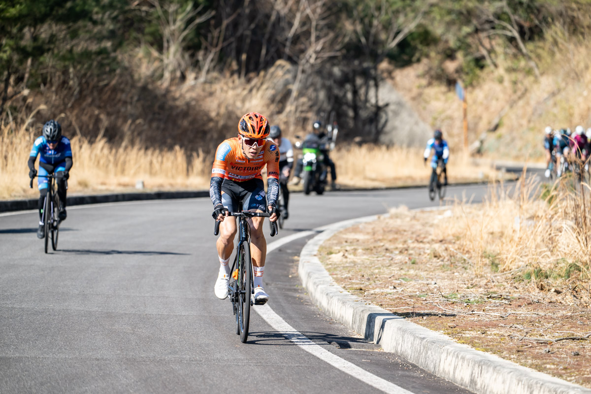 数的有利なシマノレーシングがどのような動きを見せるのか気になる中、最終周回である7周回目突入を目前に控えた最終コーナー手前で白川が単独で落車。先頭はシマノレーシング3名となってしまう。先頭の3名は協調しながら三段坂を終え、このままチームメイト全員でフィニッシュを迎えるかと思われた矢先、残り3km付近の展望所への上りで風間がアタック、独走態勢となる。風間がホームストレートに姿を見せると、後ろにはチームメイト2名の姿も見えるものの追いつくには至らず、風間が独走で優勝を飾った。2位にはチームメイトとのマッチスプリントを制した香山が入り、3位には冨尾が入る。4位には最後まで前を追い続けた白川が入り、5番手にはオープン参加となっている桑原が、6番手にはこちらも同じくオープン参加である吉田が入る形となった。表彰対象となる5位には石原が入り、6位にはこちらもシマノレーシングの山田拓海が入り、表彰対象6名中5名がシマノレーシングという結果となった。