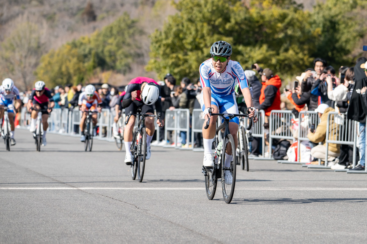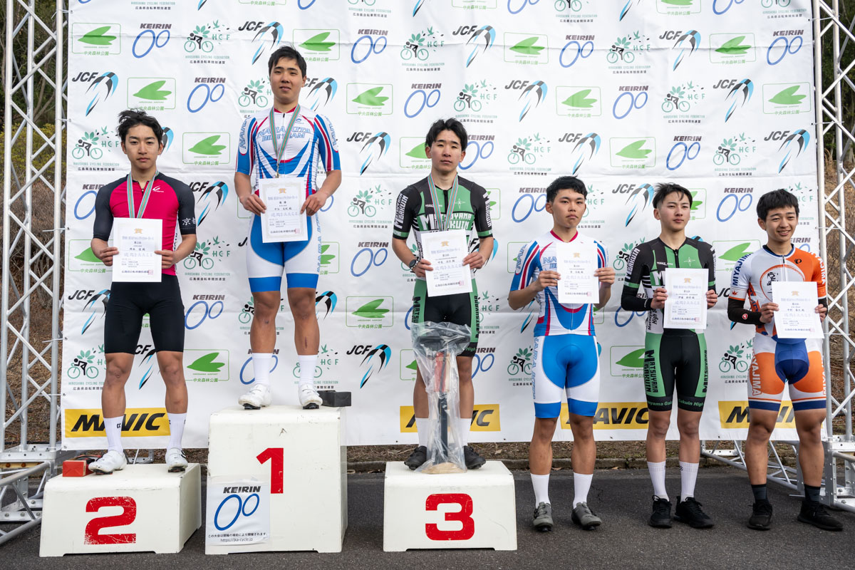 数的有利なシマノレーシングがどのような動きを見せるのか気になる中、最終周回である7周回目突入を目前に控えた最終コーナー手前で白川が単独で落車。先頭はシマノレーシング3名となってしまう。先頭の3名は協調しながら三段坂を終え、このままチームメイト全員でフィニッシュを迎えるかと思われた矢先、残り3km付近の展望所への上りで風間がアタック、独走態勢となる。風間がホームストレートに姿を見せると、後ろにはチームメイト2名の姿も見えるものの追いつくには至らず、風間が独走で優勝を飾った。2位にはチームメイトとのマッチスプリントを制した香山が入り、3位には冨尾が入る。4位には最後まで前を追い続けた白川が入り、5番手にはオープン参加となっている桑原が、6番手にはこちらも同じくオープン参加である吉田が入る形となった。表彰対象となる5位には石原が入り、6位にはこちらもシマノレーシングの山田拓海が入り、表彰対象6名中5名がシマノレーシングという結果となった。
