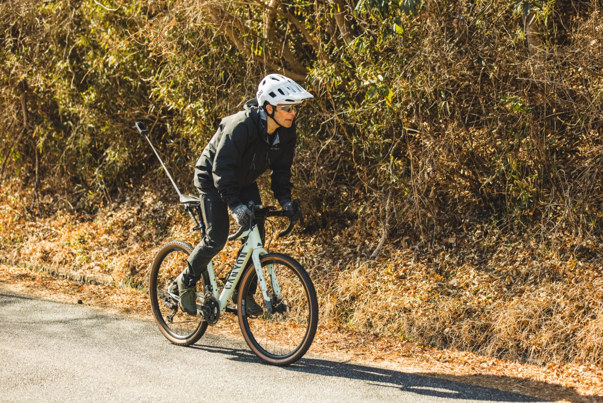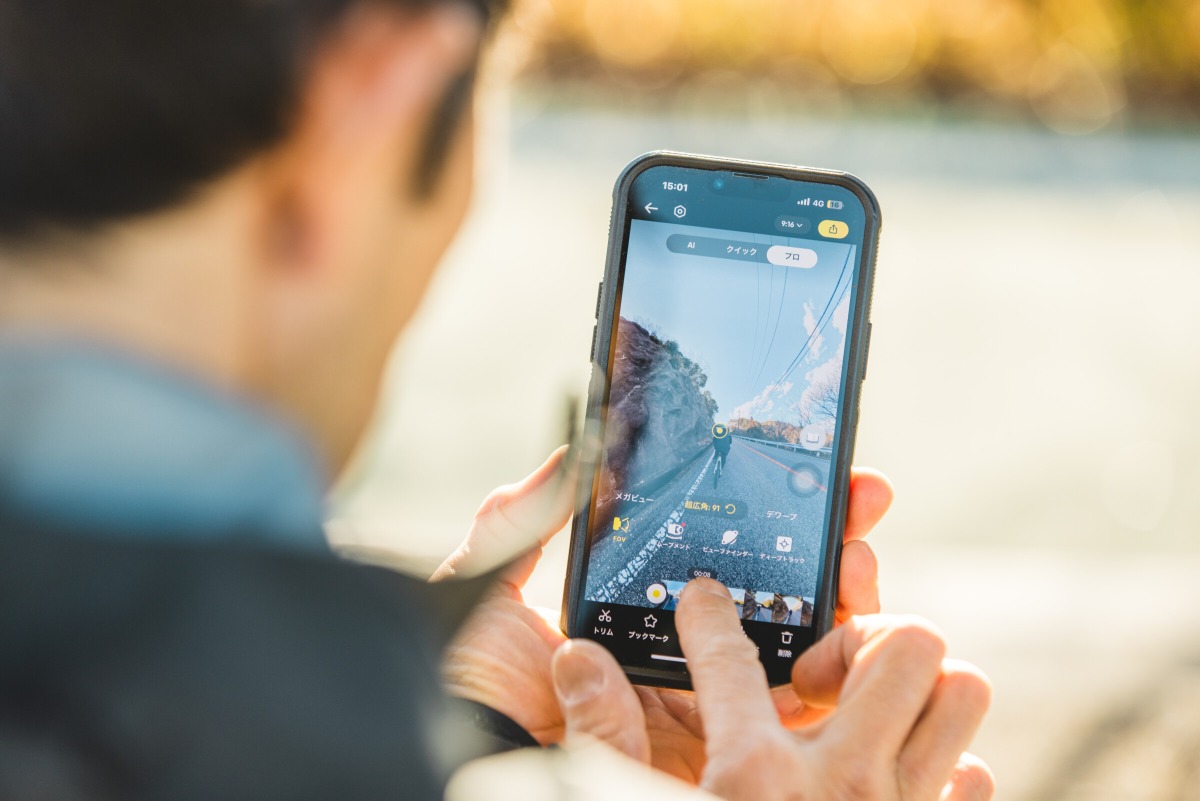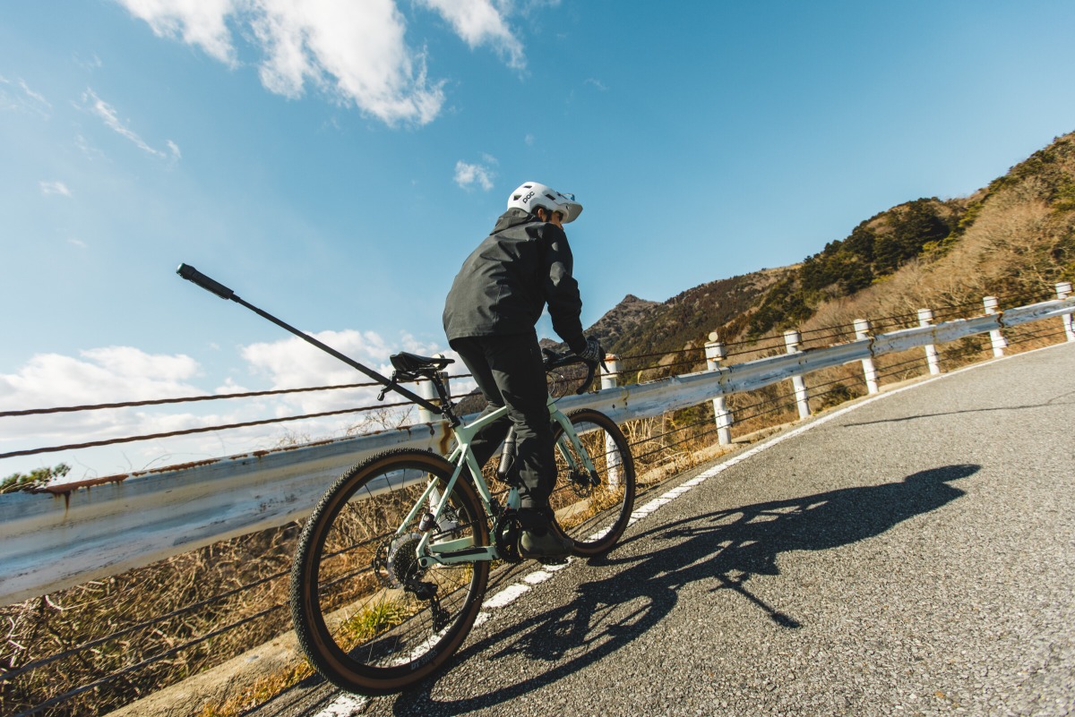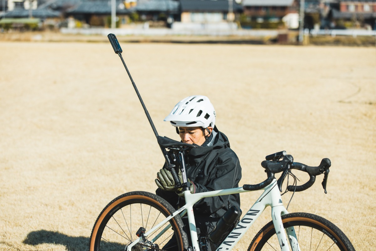 ソロライドの時でも、自分と景色を三人称視点で手軽に撮影できる。サイクリングの記録を残す以外にも、ライドフォームの確認にも役立つ