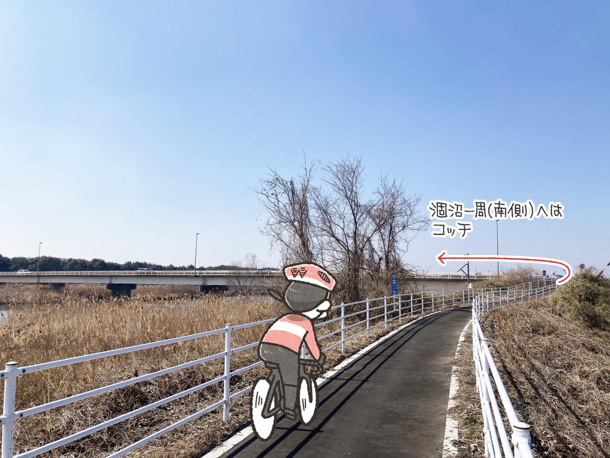 一周するにはここで橋を渡り南側へと行くのですが、今回はしじみを求めてそのまま直進します。この先は以前までは未舗装だったので今回初めて走ったのですが、サイクリングロードが伸びて嬉しいな~!と喜んでいたら途中で急に数十メートルだけダートに放り出されるということがありましたがきっといずれ繋がるだろうと願ってます。