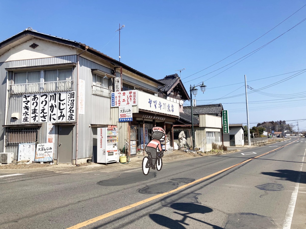 涸沼の南側を走り大洗方面へと向かいます。こちら側は湖畔からは少し離れている一般道を通るため、涸沼はほぼ見えず。涸沼周辺にはしじみ直売所があちこちにあるのですが、自転車だと持って帰りづらいのが難点です。
