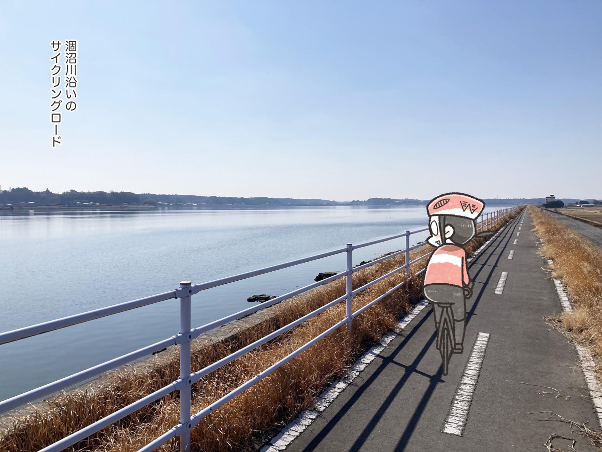 県道106号線を西へと進み、涸沼川に架かる赤い橋を越えた先からサイクリングロードへと入ります。涸沼は一周約24kmで、北側はサイクリングロードが整備されていてとても走りやすい。