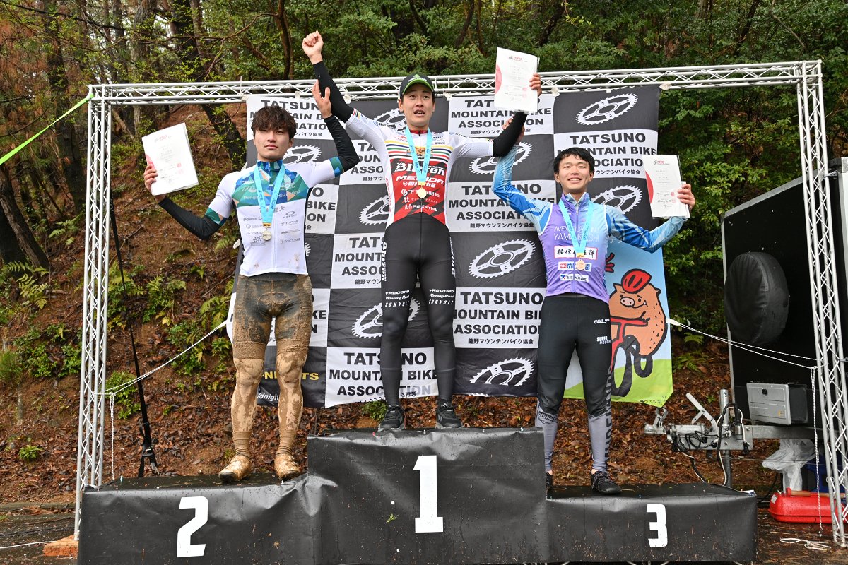 同時スタートの男子ジュニアでは、エリートの上位選手に食らいつく走りを見せた全日本チャンピオンの野嵜然新(RACING TORQUE)が、2位以下に2分以上の差をつけて圧勝。2位には地元の松山海司(Sonic Racing)、3位には中仙道侑毅(FUKAYA RACING)が入った。