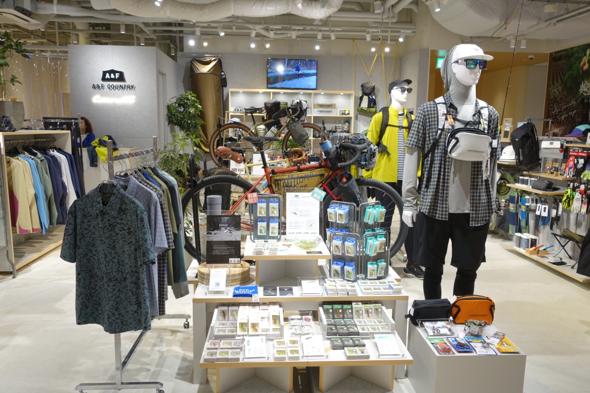 渋谷スクランブルスクエア9階に位置するA&Fカントリー渋谷店は、エイアンドエフが扱うアウトドアアイテムが大規模に展開されている都内の旗艦ショップです。