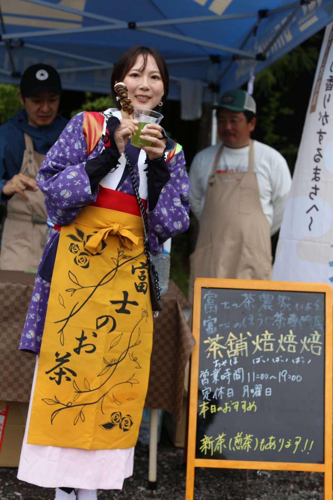 第2エイドでは、お茶の名産地でもある富士市ならではのメニュー、お茶とほうじ茶餡の団子を楽しむ。富士市の茶農家が立ち上げたほうじ茶専門店「茶舗焙焙焙」の出展だ。ちなみに、この「茶舗焙焙焙」を営む会社の社名は「日本茶茶茶(ニッポンチャチャチャ)株式会社」。なかなかイカしてる。これらのエイドステーションは富士商工会議所のアイディアによるものだという。富士グラベルに対する地元の期待を感じられる内容だった。