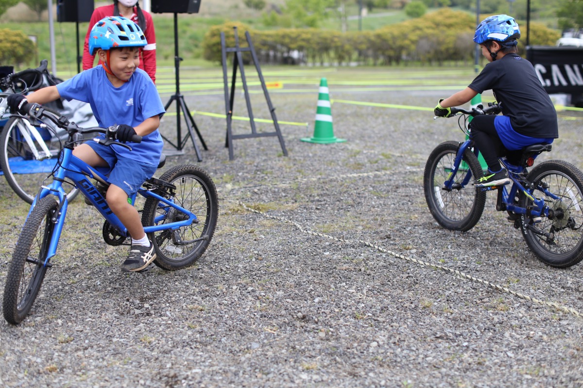 富士山麓のグラベルを堪能し、ゴールしたのは昼過ぎ。会場では各メーカーのグラベルバイクの試乗会や物販、バイク相撲などのイベントも行われ、走り終えた参加者の笑顔で溢れていた。なお、今大会の最年少完走者は小2。