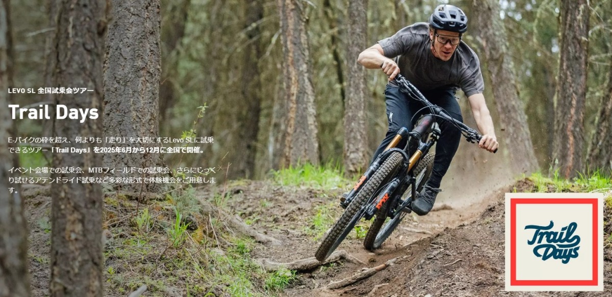 E-バイクの枠を超え、何よりも「走り」を大切にするLevo SL。その真価を体感できる試乗会ツアー「Trail Days」を2025年6月から12月にかけて全国各地で開催する。イベント会場でのカジュアルな試乗から、MTBフィールドでの試乗会、さらにじっくり試せるアテンド付き試乗などさまざまなスタイルでLevo SLの魅力を体験できる。