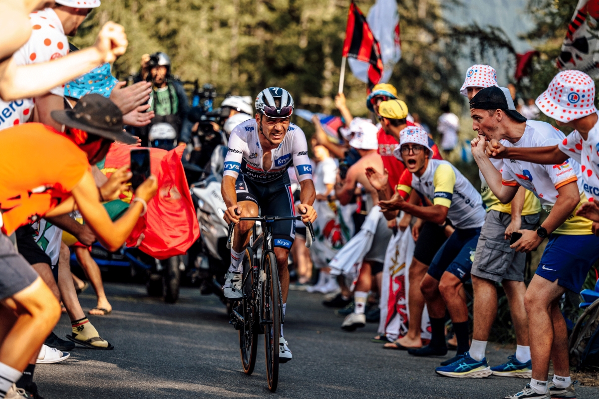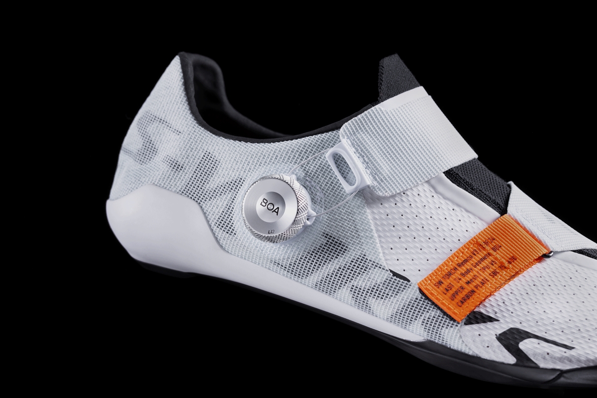 従来モデルから65.1gの軽量化を達成するため、アッパー構造の簡素化、BOA® Li2シングルダイアルと太めのストラップの採用、カーボンプレートの小型化などを徹底。エヴェネプールはプロトタイプを2024年のツール・ド・フランスの主要な山岳5ステージで実戦投入し、ヤングライダー賞獲得に貢献。「驚くほど軽く、足のホールドは抜群で、それでいて快適。上りの多いレースでまさに求めていたシューズ」と絶賛している。