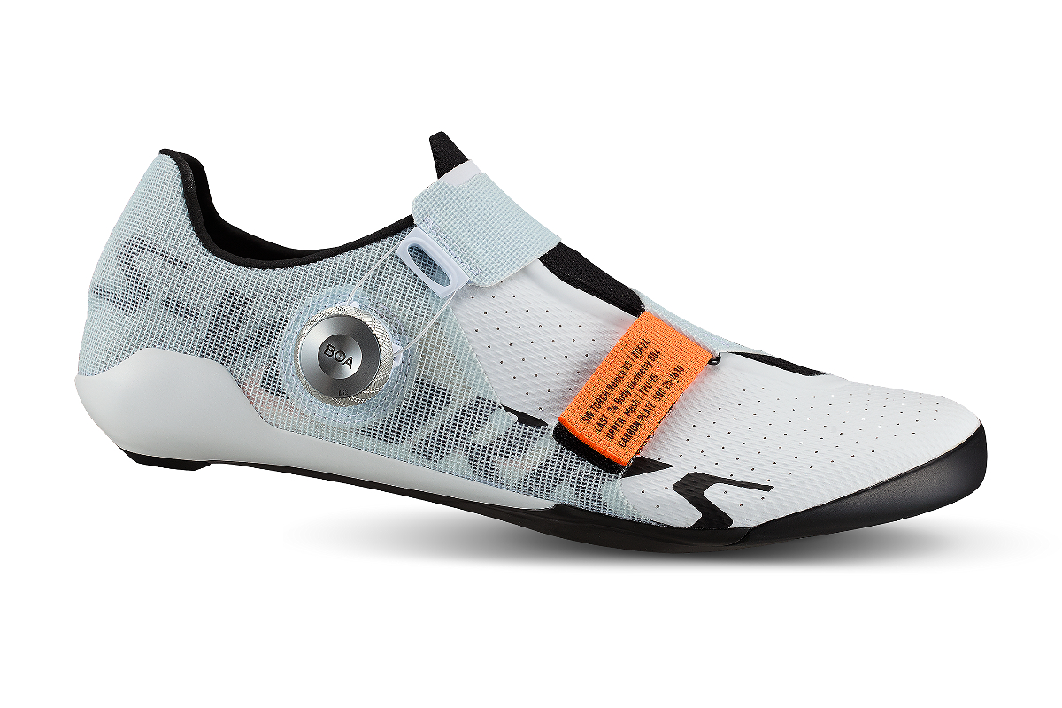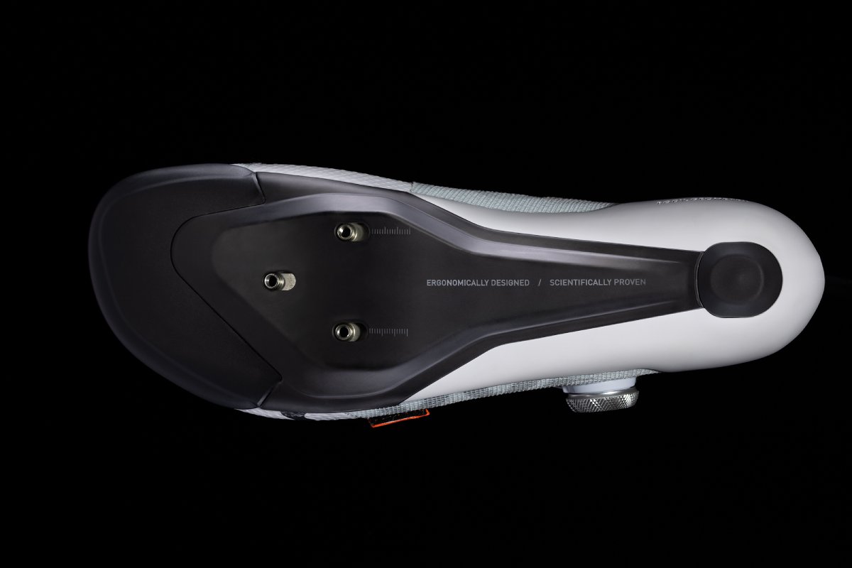 スペシャライズドは6年にわたるアウトソール剛性の研究から、「剛性が高すぎてもパフォーマンスは向上しない」という結論に至り、最大限のパワー伝達を実現する“剛性の最適値”を科学的に導き出した。この剛性設計は、2000Wを超えるパワーを発揮するトップスプリンターの実走テストでも裏付けられ、軽量化と効率性を両立している。