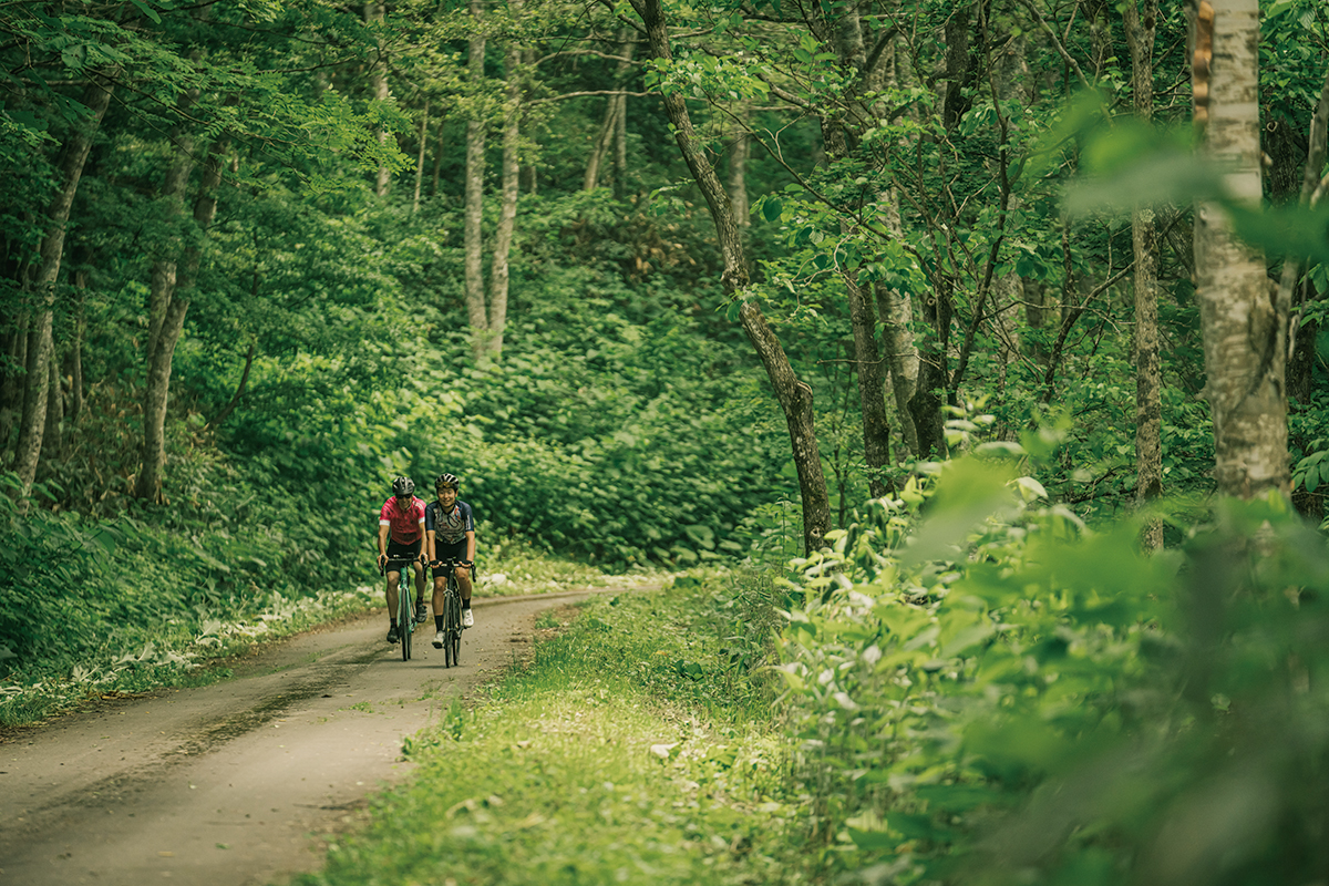ニセコエリアにはニセコグラベル(今年は9月23、24日開催)でも知られるように、走りやすいダブルトラックがある。杉本さんはロードバイクに少し太めのタイヤを履かせてグラベルルートを走り、2人でペースを合わせながら、ニセコアンヌプリ・羊蹄山などの山々とグラベルライドを楽しんだ。
