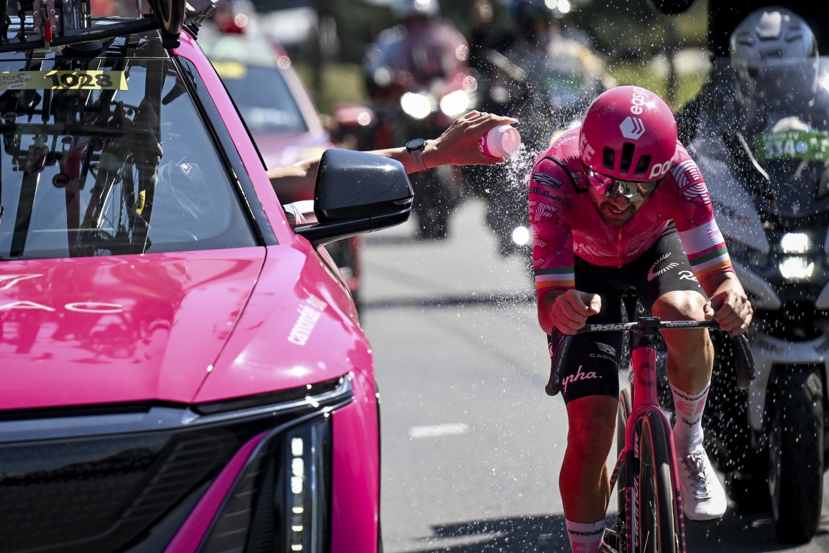 この結果、マイヨ・ジョーヌはマチューへ。第2ステージ勝利で一度袖を通していたが、前日の個人TTで遅れてジャージを手放していた。ポガチャル擁するUAEチームエミレーツ・XRGが追走を急がなかった一方で、レース終盤はチーム ヴィスマ・リースアバイクが逃げライダーとのタイム差を意図的に縮める動き。ポガチャルにリーダーとしての役目を継続させるねらいがあるかに見られたが、マイヨ・ジョーヌは1日で持ち主が戻ることとなった。逃げ切ったマチューに再びトップの座が舞い込んできた。ポガチャルは総合タイム1秒差で続いている。