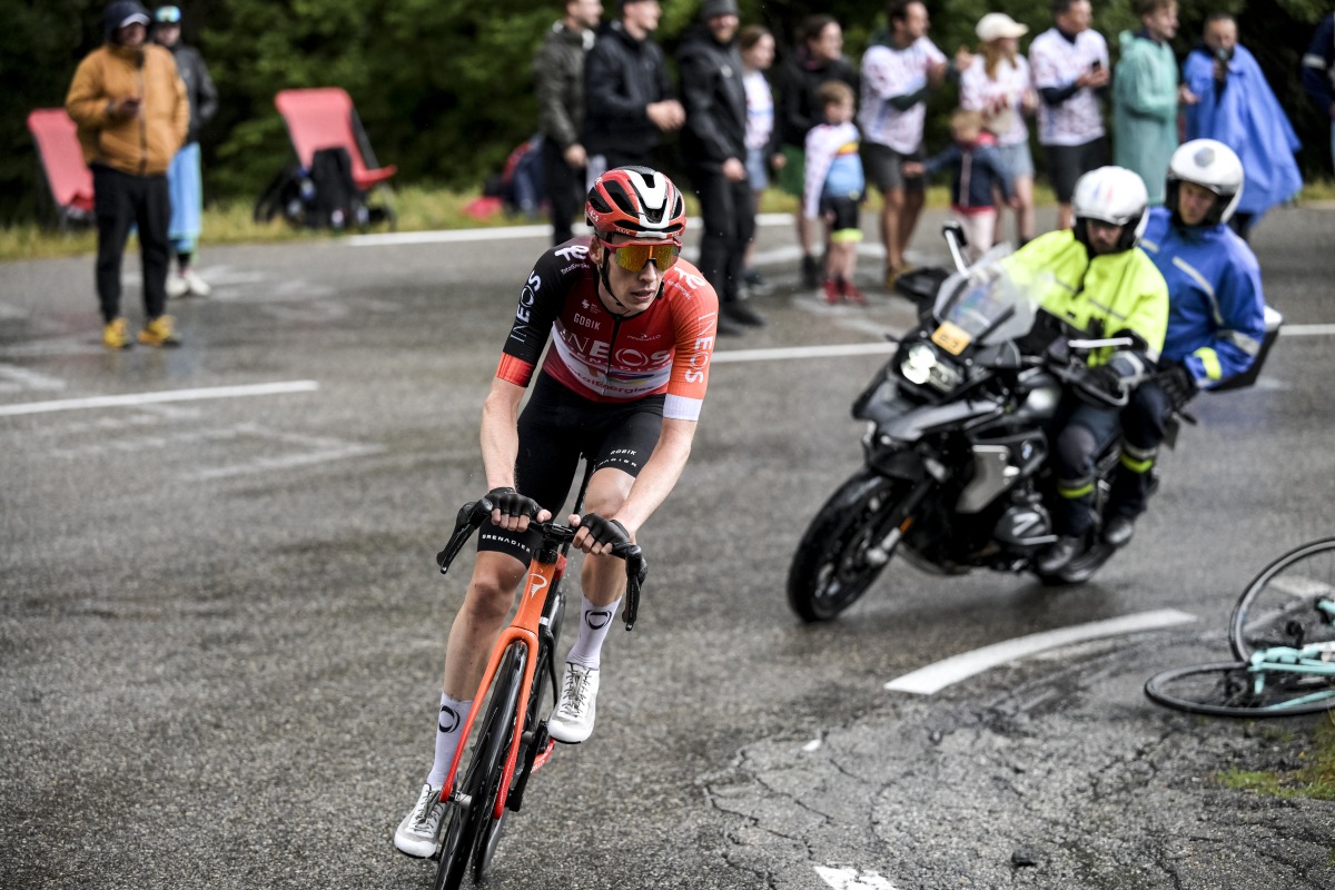 強まる一方の雨の中を懸命に逃げるアレンスマン。約30秒後ろでは、ポガチャルがスピードアップ。ヴィンゲゴーのほか個人総合3位のフロリアン・リポヴィッツ(レッドブル・ボーラ・ハンスグローエ、ドイツ)、同4位オスカー・オンリー(チーム ピクニック・ポストNL、イギリス)も追随。トップ4グループとなって、ポガチャルが牽く形に。少しずつアレンスマンとの差を縮めていった。