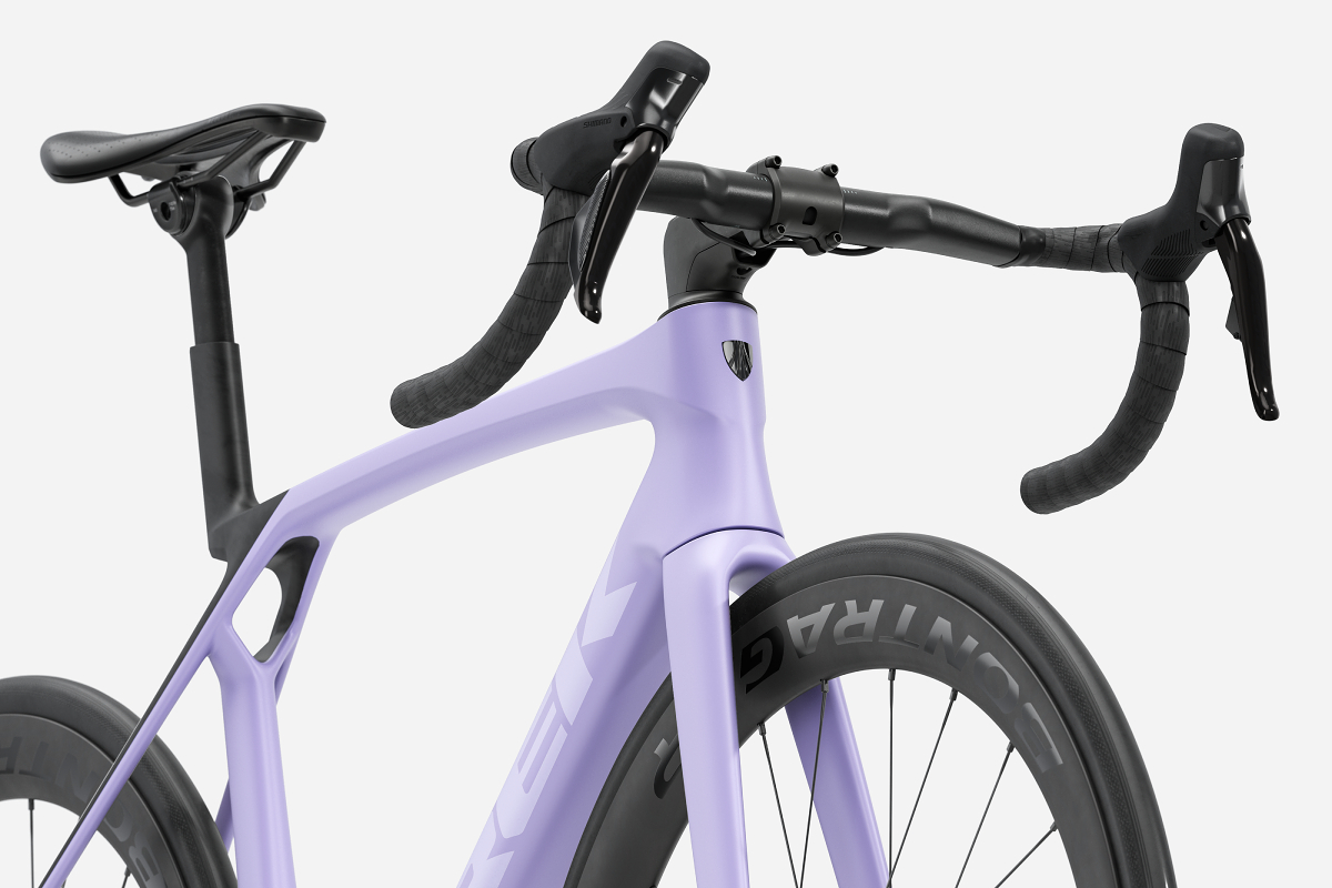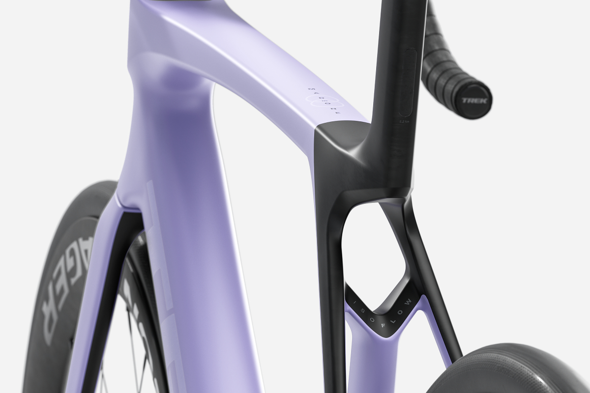 フレーム形状は最上位モデル「Madone SLR Gen 8」と同一で、エアロ性能と軽量性を両立。シートチューブに設けられた大胆な開口部が快適性と空力性能を向上させる革新的な「IsoFlowテクノロジー」もそのまま搭載されている。