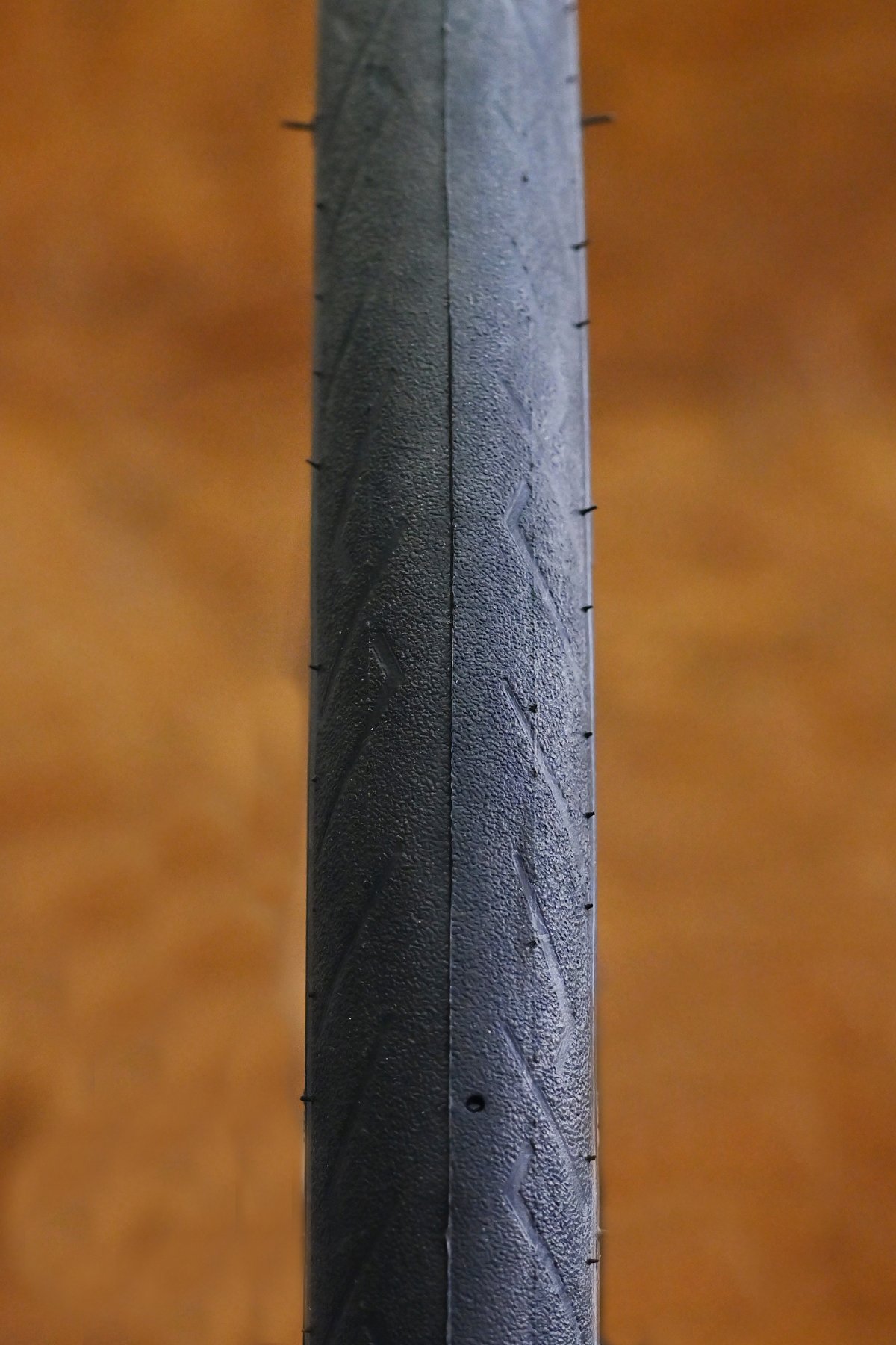 トレーニング用といっても、ただパンクに強くて耐摩耗性が高ければいいというわけではない。グリップが高くなければレースと感覚が乖離してしまうし、落車につながりかねない。なにより、堅牢性が高いだけのタイヤは走っていて楽しくない。レーシングモデルの走りの軽さとグリップをできるだけ維持しつつ、日常使用に耐える耐久性と耐パンク性を付与する。それがトレーニング用万能ロードタイヤの理想形だ。