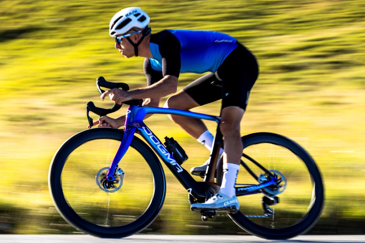 NEW DOGMA Fは、空力性能と軽量化を両立させたピナレロの技術の結晶。独自の非対称フレームデザインは、ペダリングパワーを最大限に引き出し、優れたハンドリング性能は、あらゆるコースでライダーを勝利へと導きます。イネオス・グレナディアーズの選手たちがその性能を証明している。