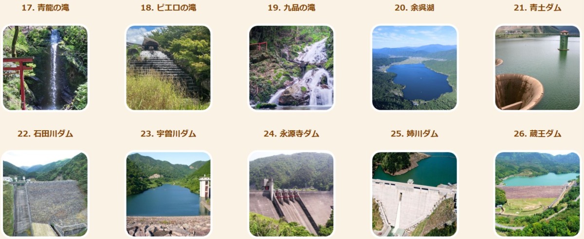 テーマ② 「滝&ダム巡り」のスポット一例