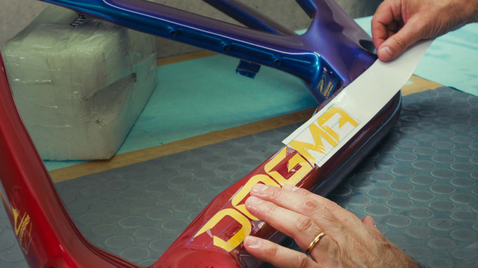 細部にまでポリッシングが行われた後に、フレームに「Decaplus(デカプラス)」と呼ばれる特殊なデカールが施される。このデカールは一般的なアンダーコートデカールに比べて軽量で、表面も非常に滑らかになり、メタリックカラーのような美しいカラーバリエーションも可能になった。