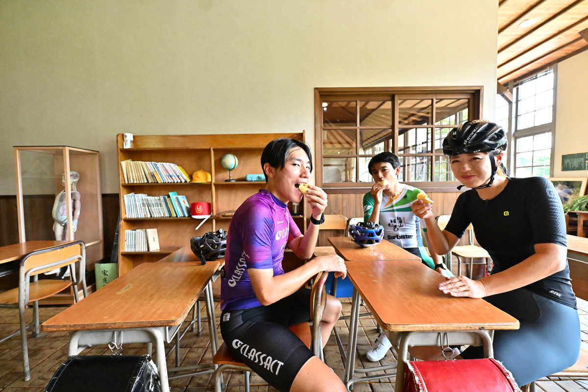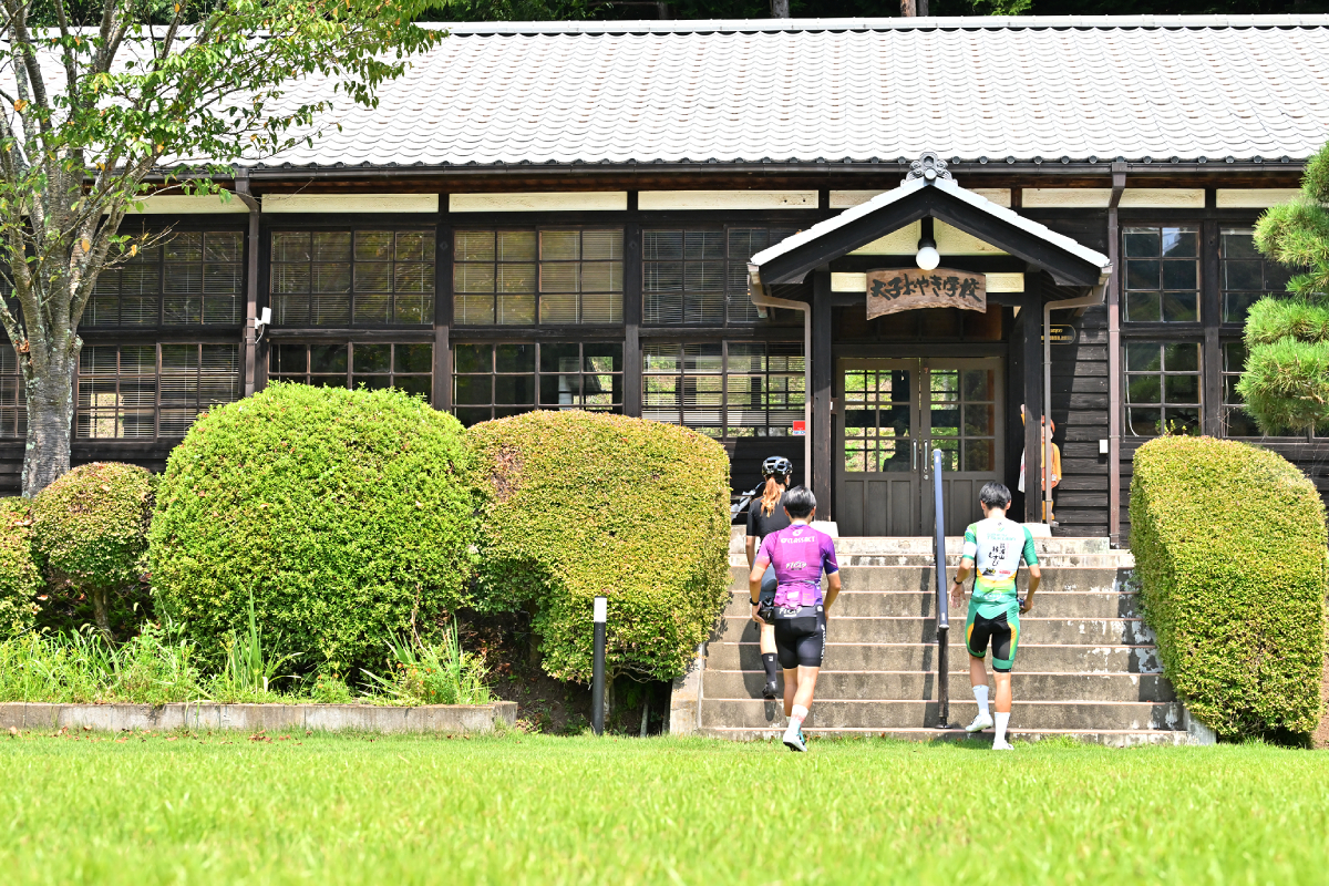 二つの峠を抜けると、第三エイドステーションである大子おやき学校に到着する。77.5km地点のこのエイドが、八溝山タイムトライアル前にある最終補給ポイントだ。ここで補給食とドリンクを十分に摂取し、決戦の地・八溝山の麓、87.0kmの計測開始地点へと向かおう。