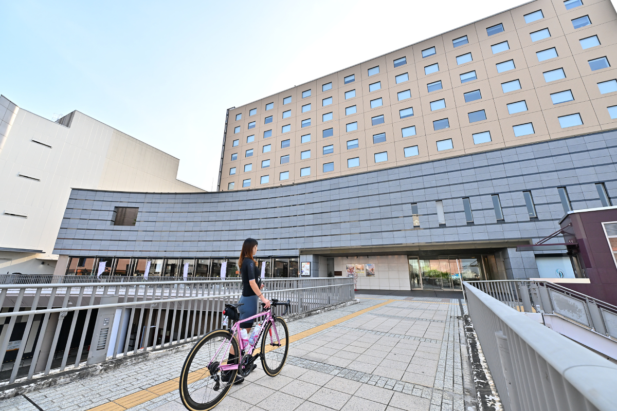 スタート地点である水戸市内にあり、JR水戸駅からペデストリアンデッキで直結という最高の立地。輪行でのアクセスも容易で、バイクは組み立てた状態でクロークに預けたり、ホテル貸出しのカバーを掛ければ部屋に持ち込むことも可能。当日に慌てることないよう、前日のうちにバイクを組み立てて最終チェックを行おう。全室シモンズ製ベッドでレース前の休息の質を高め、無料のサウナ付きスパで身体を最高の状態に整えることができる。万全のコンディションでスタートラインに立つための最適な選択肢だ。