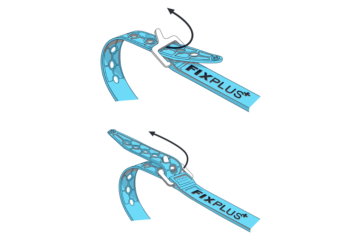 FIXPLUSの最大の特徴は、伸縮性を抑えることで強度を向上させている点だ。ストラップを強く引き、バックルで固定することで、対象物をガッチリと締め上げ、振動による緩みを一切許さない。この確実なホールド力が、安全でストレスフリーなアクティビティを約束するのだ。