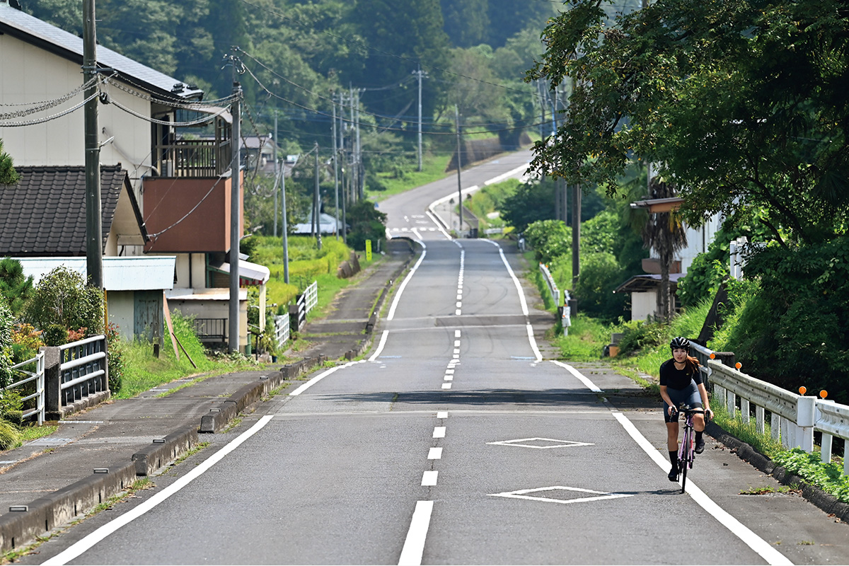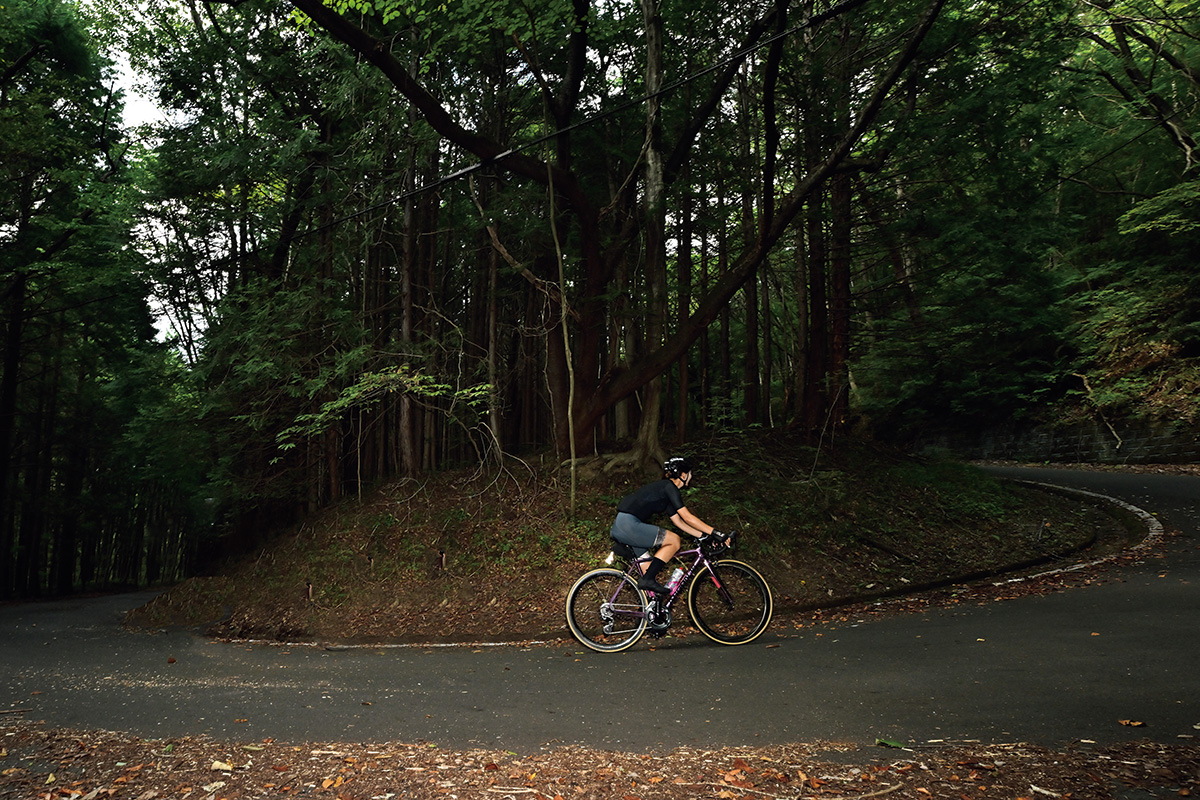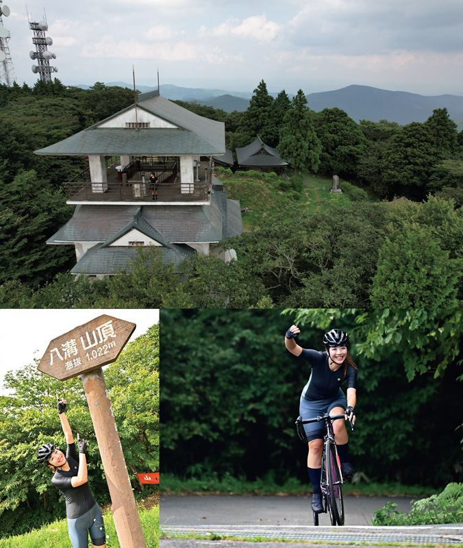 八溝山ヒルクライムの魅力は、表情の異なる2つのルートを選べることにある。今回のモデル仲谷あいさんが「これぞ飴と鞭!って感じの勾配の変化で、しんどいのが続くわけではないのでノリと勢いで登れる!」と語るように、どちらも挑戦しがいのある本格的なコースだ。自分の脚質やその日の気分で、どちらから頂上を目指すか考えるのも、この山を訪れる楽しみの一つと言えるだろう。