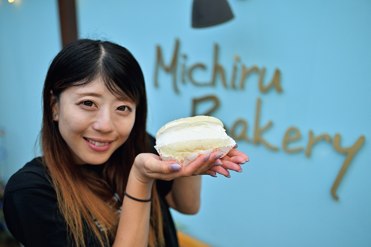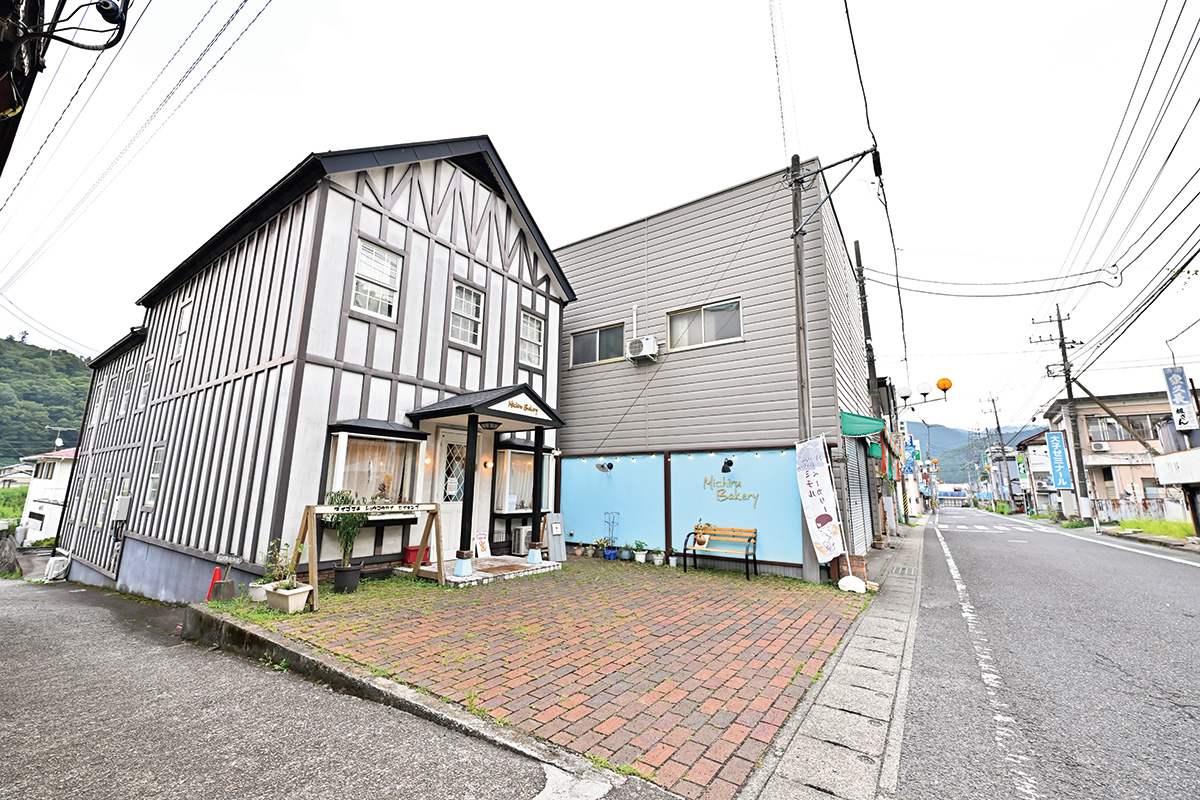 可愛らしい洋風の建物が目印のミチルベーカリー。「シナモンロールは、しっとりサクサクの食感が楽しくてペロリと食べちゃいました」と仲谷さん。