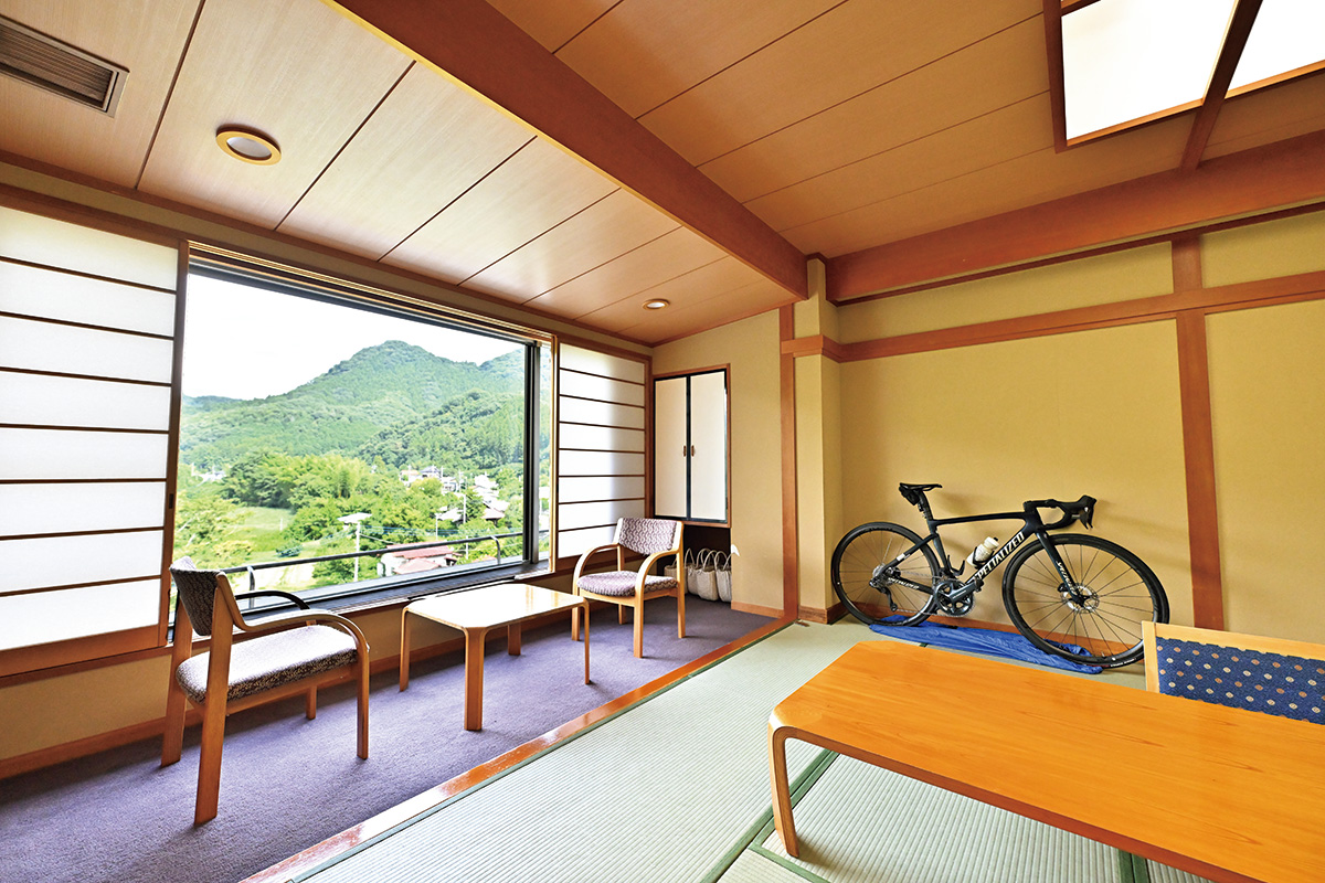 そして、サイクリストへの配慮もこの宿の大きな魅力だ。「しかも自転車持ち込みできる!」と仲谷さんが感動したように、大切な愛車を客室へ持ち込めるので、安心して夜を過ごせる。その際は、床が汚れないようにレジャーシートなどを持参すると、よりスムーズに利用できるだろう。雄大な自然の中で極上の温泉と美食を楽しみ、愛車と共に心安らぐひとときを過ごせるこの温泉旅館は、サイクリストにとって忘れられない思い出を約束してくれるはずだ。