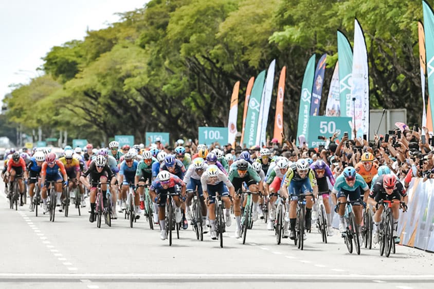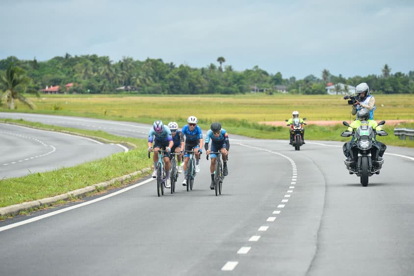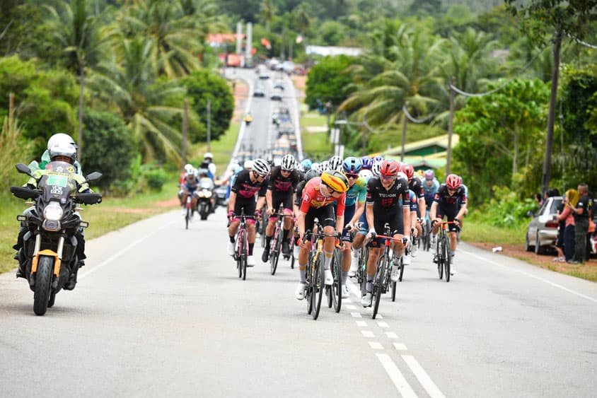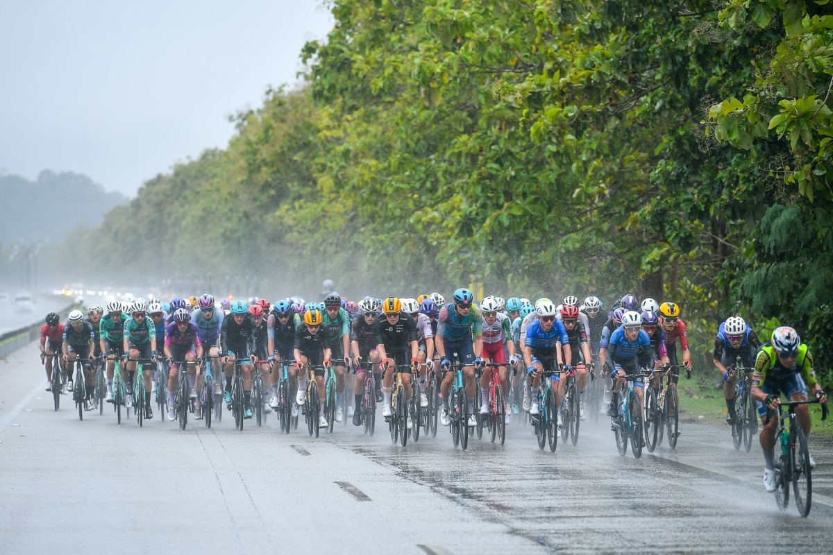 タイ国境の町パダン・ブサールをスタートしたステージは、序盤から激しい雨に見舞われた。濡れた路面と視界の悪さがレースに不確定要素を加える中、集団は落ち着くことなく、スタート直後からアタックが繰り返される非常にアグレッシブな展開となった。