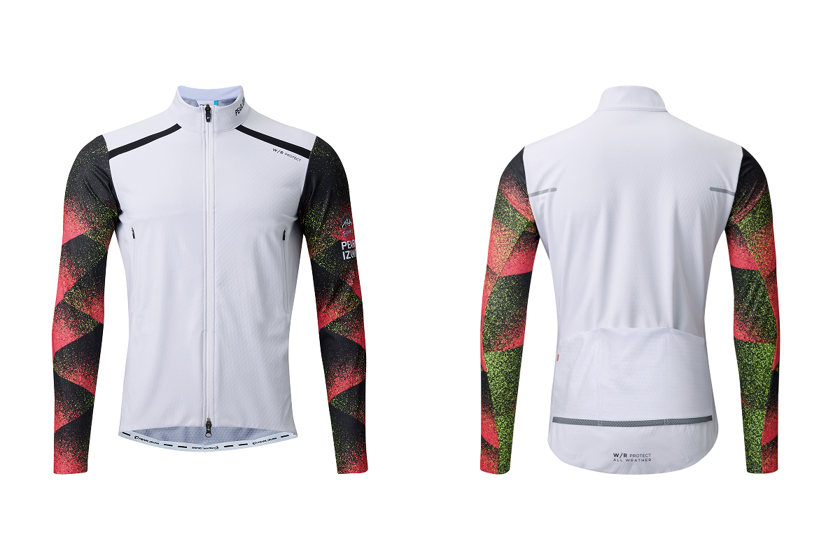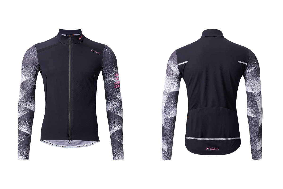ディテールにもプロの要求が反映されている。袖口は縫い目をなくしたカットオフ仕様で、秋冬用グローブの袖口とすっきりと重ねることができ、冷気の侵入をシャットアウト。脇にはウェア内の温度を調整できるファスナー付きベンチレーションポケットを配置。バックポケットの底にはパンチング加工された再帰反射を配し、雨水の滞留を防ぎつつ、夜間の視認性を高めるなど、細部にまでこだわりが尽くされている。