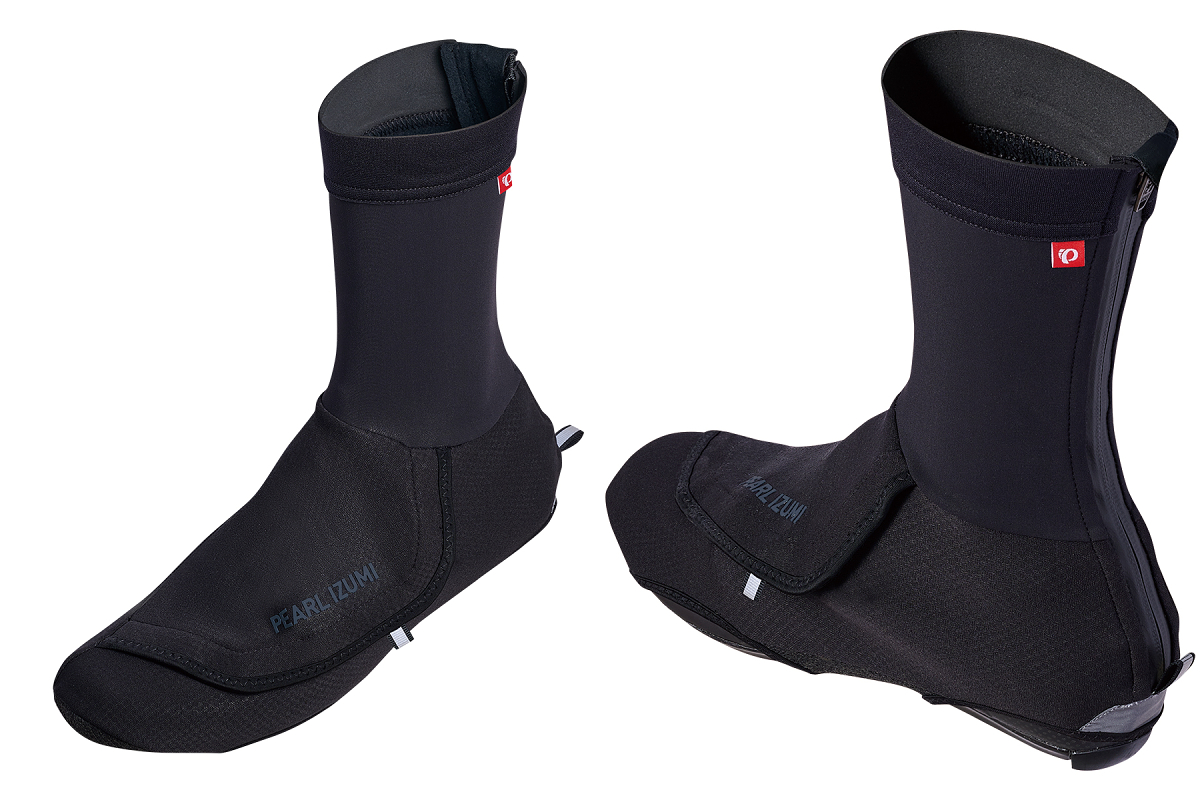 ペダリング時の足首の複雑な動きを解析し、薄手の防風素材を組み合わせることで、抜群のフィット感を実現した超立体構造のシューズカバー。最大の特徴は、甲部分に設けられた「窓」。これにより、シューズカバーを着用したまま、シューズのBOA®ダイヤルなどを調整することが可能になり、ライド中の細かなフィット調整が容易になった。足裏にはスレに強いケブラー素材を採用するなど、耐久性にも配慮されている。