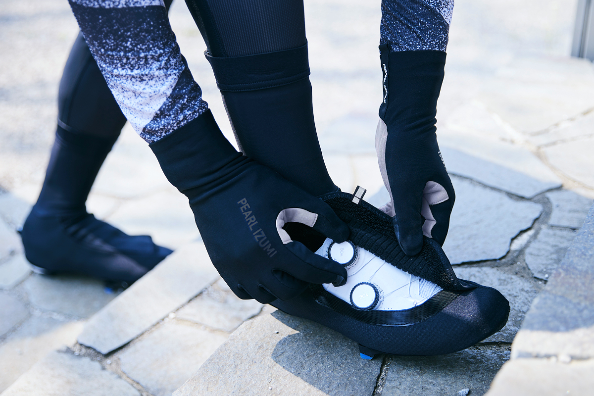 パフォーマンスを左右するのは、ウェア本体だけではない。グローブとシューズカバーにも、フラッグシップの名にふさわしいこだわりが詰め込まれている。