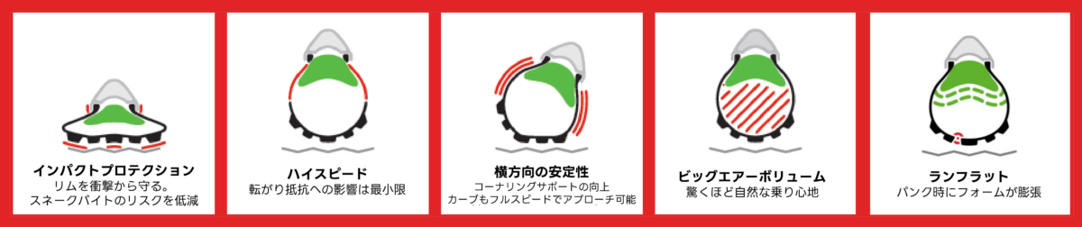 - リム打ちパンクを防止するインパクトプロテクション