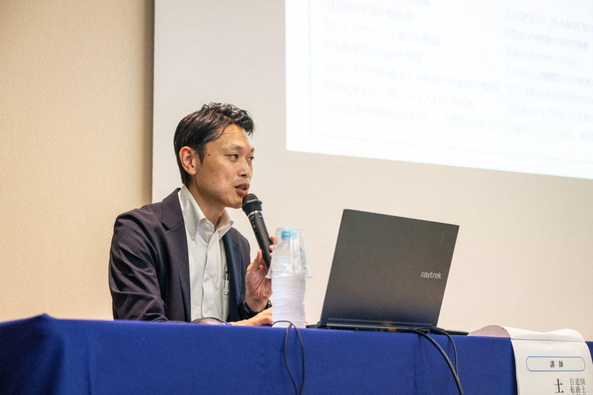地元を代表して株式会社トリベイ代表取締役社長の縫谷吉彦氏は、鳥取市での「観光シェアサイクル実証事業」について報告し、「移動データ分析により観光回遊性と経済効果を見える化できる」と述べ、岩美町観光協会の田中司事務局長はアニメロケ参考地巡りに合わせたサイクリングの人気を紹介し、ライト層の拡大を実感しているとつづけた。また、鳥取県サイクルツーリズム振興室の木原久美室長は「行政は主導ではなく、地域や民間の挑戦を支援する立場」と語り、矢羽根整備や交通安全教育による理解促進の取組を紹介した。