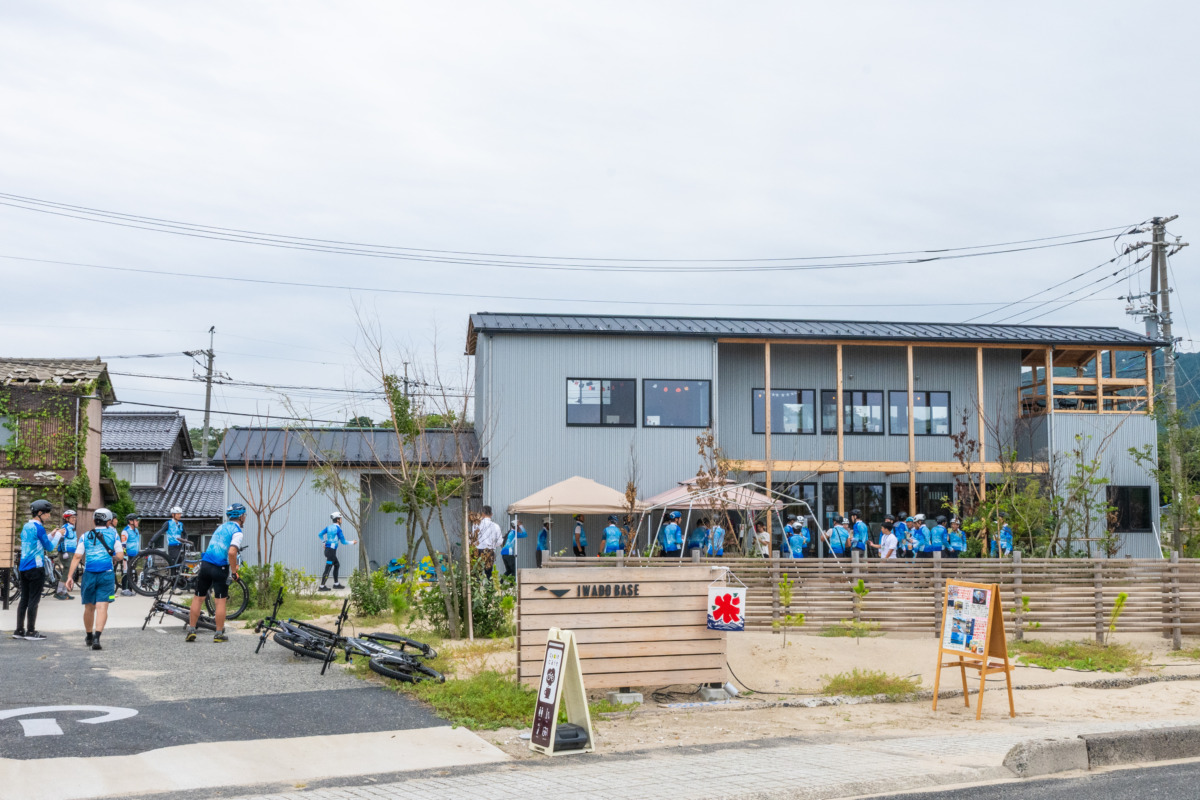 市営浜坂駐車場を出発したメンバーはトライアルライドを体験し、鳥取砂丘前の砂丘を望む駐車場から雄大なその眺めを楽しんだ。さらに進んだ先の「IWADO BASE」ではエイド休憩が設けられ、地元特産の梨ケーキと梨サイダーでリフレッシュした。