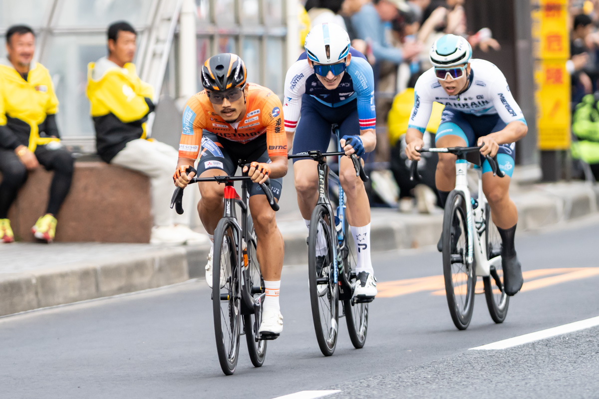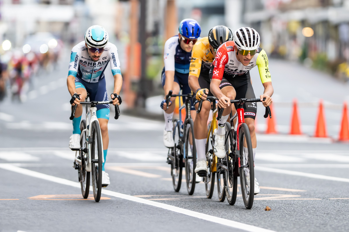 スタート直後、スイスチャンピオンジャージを着るマウロ・シュミット(チーム・ジェイコ・アルウラー)がアタックを仕掛け、最初から展開が激化。すぐにクリスツ・ネイランズ(イスラエル・プレミアテック、ラトビア)が単独で飛び出し、Jクリテリウムツアーチャンピオンの孫崎大樹(ヴィクトワール広島)や寺田吉騎(バーレーン・ヴィクトリアス)らが合流するも、メイン集団がすぐに吸収する。