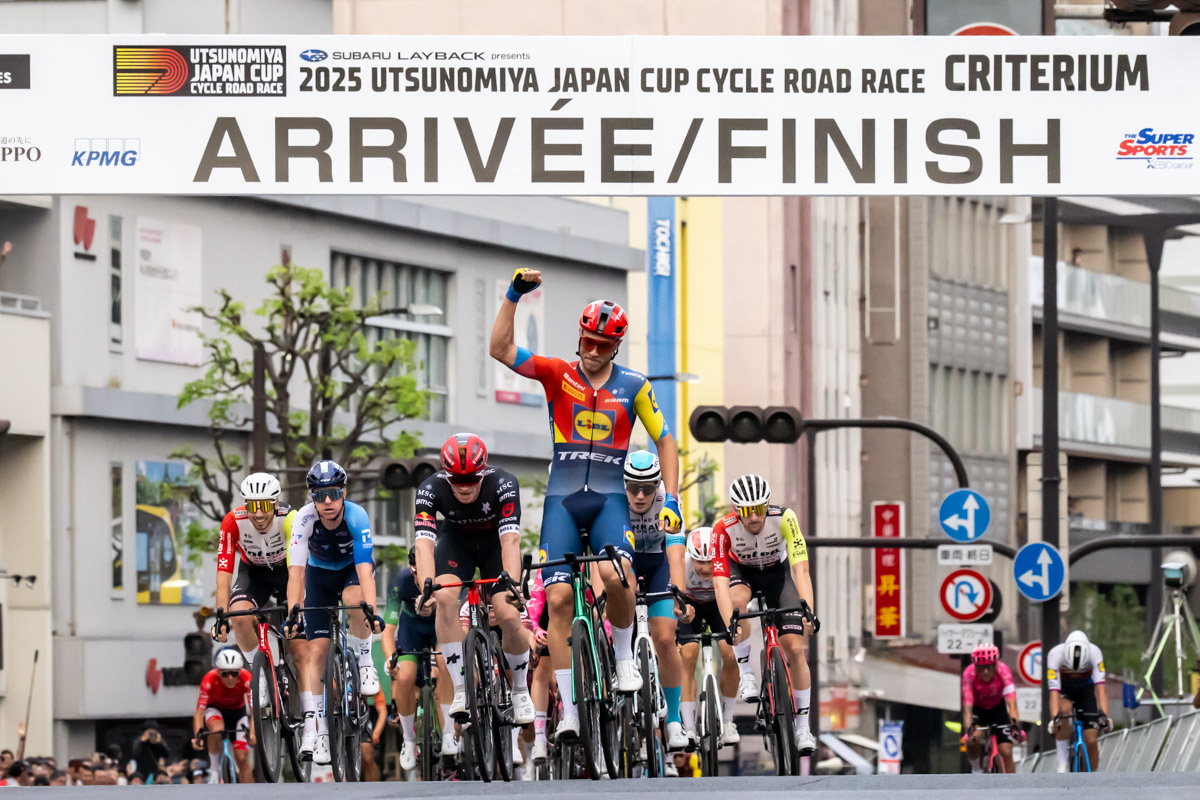 アジア最高峰のロードレースの祭典、「SUBARU LAYBACK presents 2025宇都宮ジャパンカップサイクルロードレース」は10月18日、宇都宮市大通り周回コース(1周2.25km)を舞台に「2025宇都宮ジャパンカップクリテリウム」が開催された。今年のツール・ド・フランスのポイント賞(マイヨ・ヴェール)獲得者、ジョナサン・ミラン(リドル・トレック、イタリア)が前評判通りの圧倒的なスプリント力を見せつけ、チームに大会通算8勝目、そして6連覇という前人未到の偉業をもたらした。レースの平均速度は50.7km/hに達し、歴代最速記録を大幅に更新するハイスピードバトルとなった。