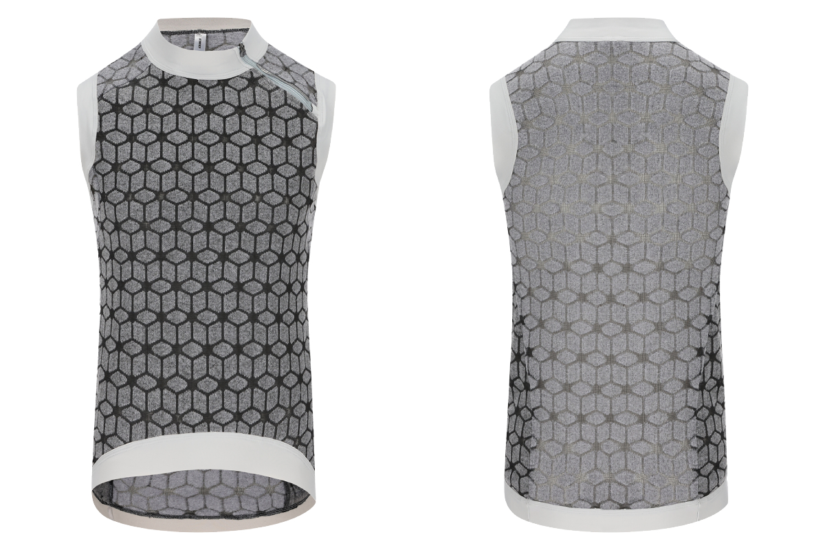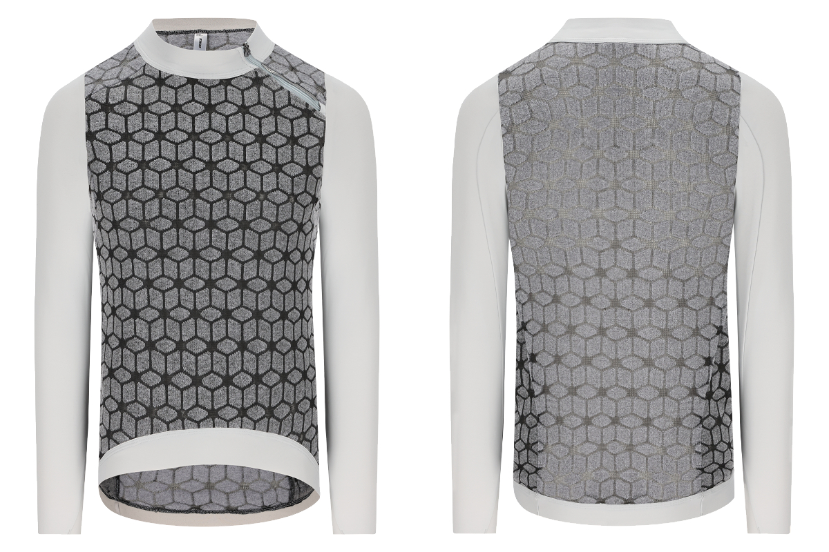 この革新的な機能の核となるのが、Q36.5が独自に開発した「Air Insulation」テクノロジーだ。ポリアミド、ポリプロピレン、エラスタンを組み合わせた起毛メッシュの超軽量フリース素材が、生地の表面に無数の微細なエアポケットを形成。これにより、ウェアのレイヤー間に大量の空気を閉じ込め、驚異的な断熱層を作り出す。国内代理店のカワシマサイクルサプライのニュースリリースでは、これを「世界最軽量の断熱材」と謳っている。