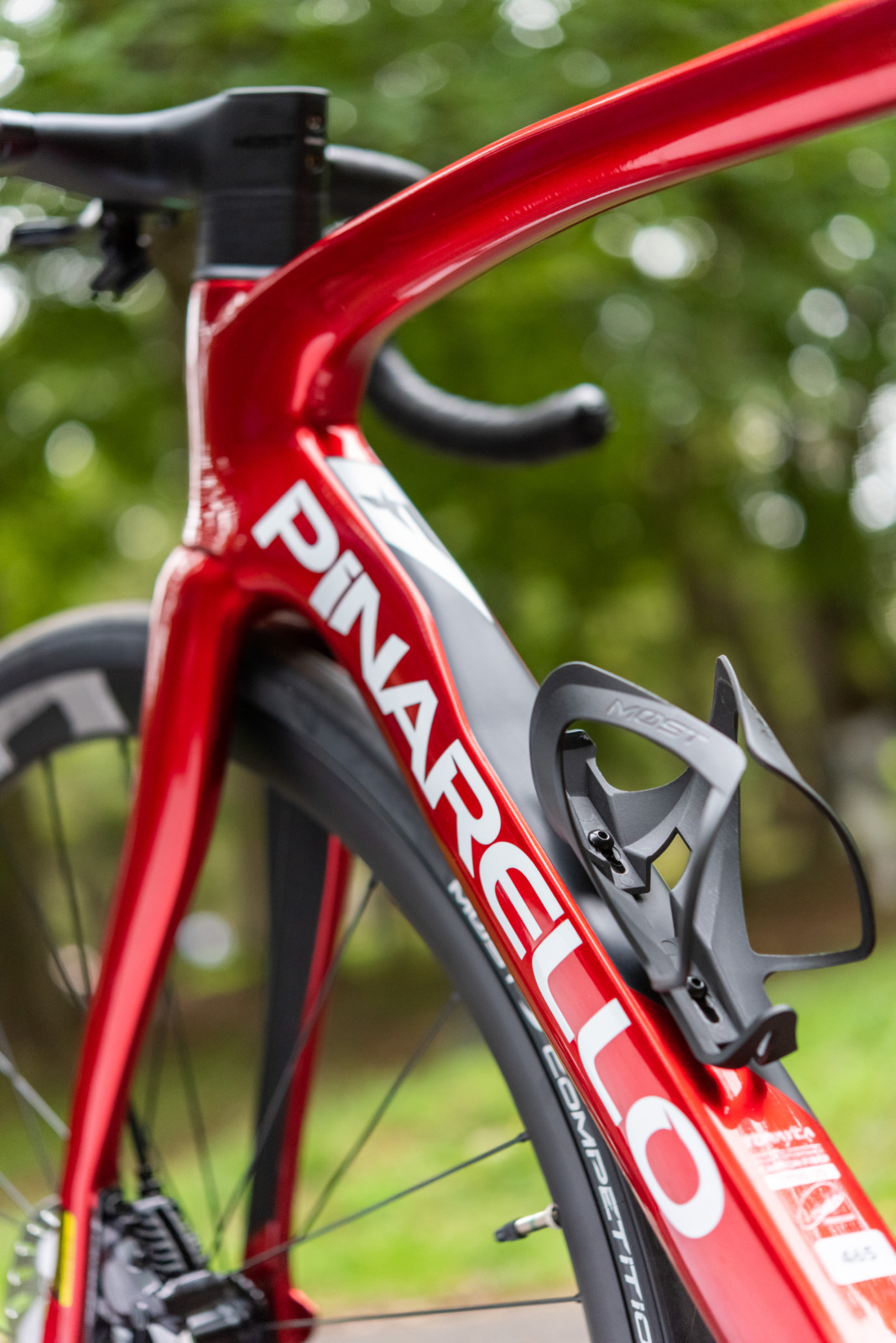 福本:お客様の先入観として、「ドグマはレース専用バイクで、F9もF7も同様にレース志向の人々に向けたバイクだ」という印象を持たれている方が多いんですが、僕は「ハイエンドバイクになると目的が制限される(レースにしか使えなくなる)」というよりは、「ハイエンドに近づくにしたがってどんどん上限が引き上げられていく」というイメージでご説明しています。どのモデルでもロングライド的な走りは楽しめます。F5であればホビーレースで活躍できますし、F7やF9であればシリアスな登録レースを戦うに十分な性能です。ドグマFはもちろんワールドツアーレベルで通用する。要するに、このF7は始められたばかりの方から、レベルの高いレースまで幅広くお勧めできるバイクだと思います。ピナレロならではのサイズラインナップの豊富さもポイントですね。