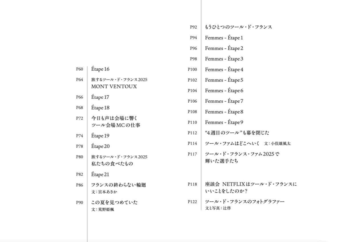 レースのレポートだけでなく、旅、実況、カルチャー、そしてメディアの視点まで、様々な角度から2025年のツール・ド・フランスを立体的に表現した本書。レースの興奮を、美しいビジュアルと深い洞察と共に追体験できる一冊となりそうだ。