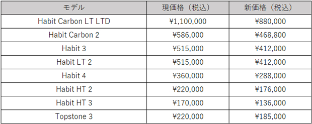 最上位モデルの「Habit Carbon LT LTD」は、110万円から88万円へと22万円もの値下げ。同じく「Habit 3」や「Habit LT 2」も515,000円から412,000円になるなど、ハイエンドなトレイルバイクが大幅に購入しやすくなった。