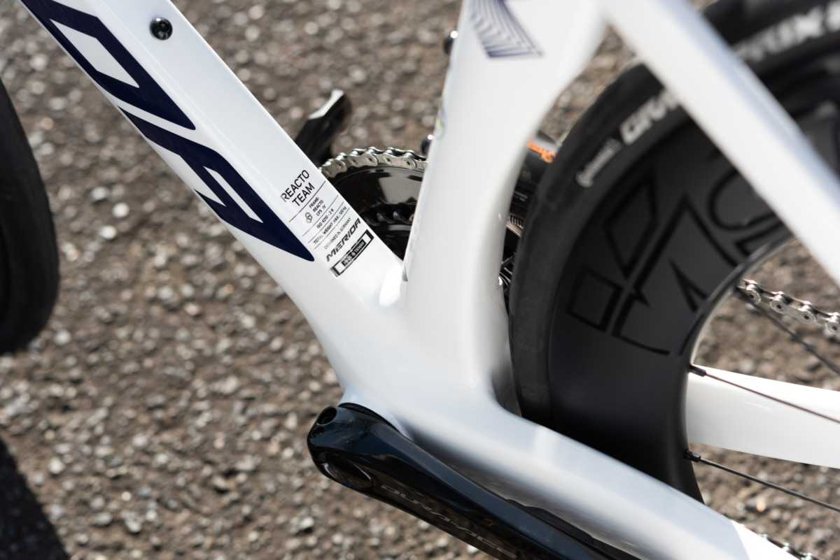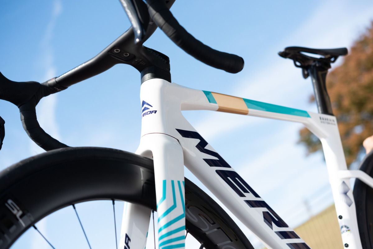 メリダが誇るエアロロードの第4世代として登場したリアクト。ケーブルフル内装化、フォーク形状の最適化、シートクランプのビルドイン化するなど当時の先端のCFD解析を軸に設計されたモデルだ。