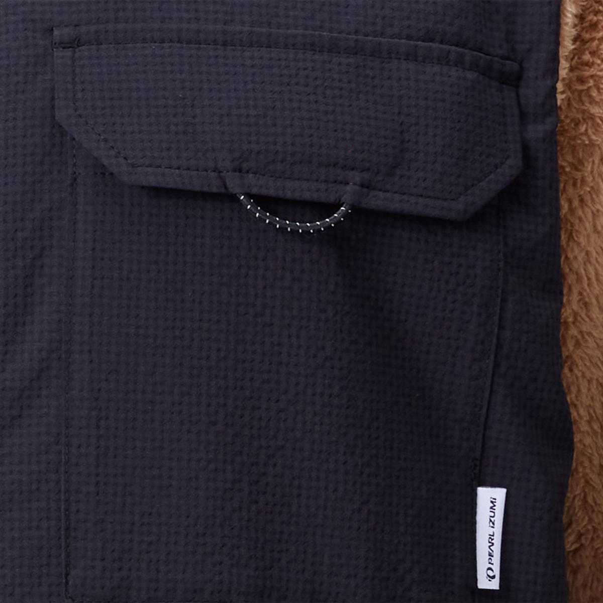 「バリア フリース パーカー」は、見た目にも暖かな両面ボアフリースをメイン素材に使用。さらに、このフリースには蓄熱保温機能がプラスされており、冬のライドでも高い保温性を発揮する。