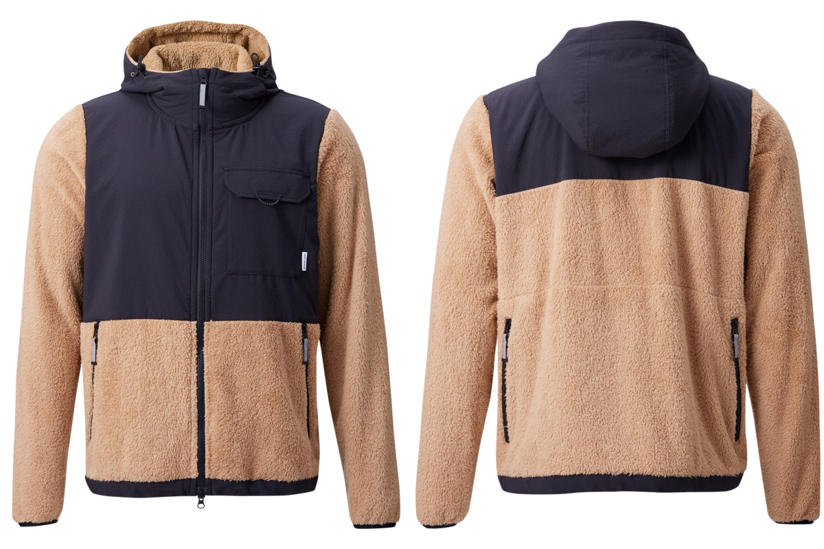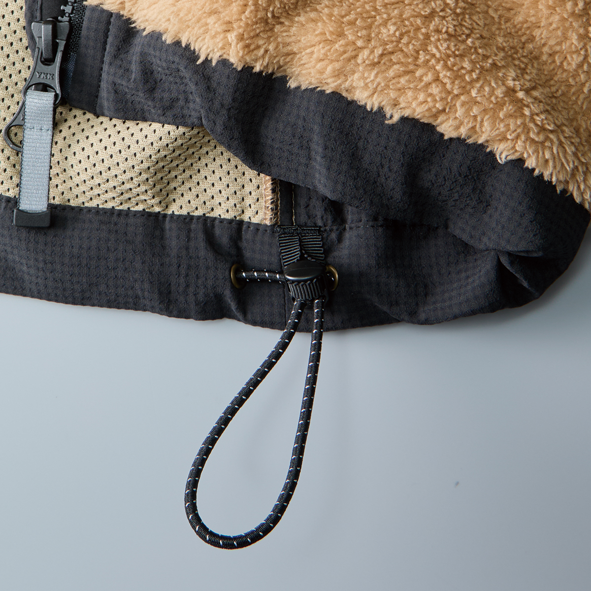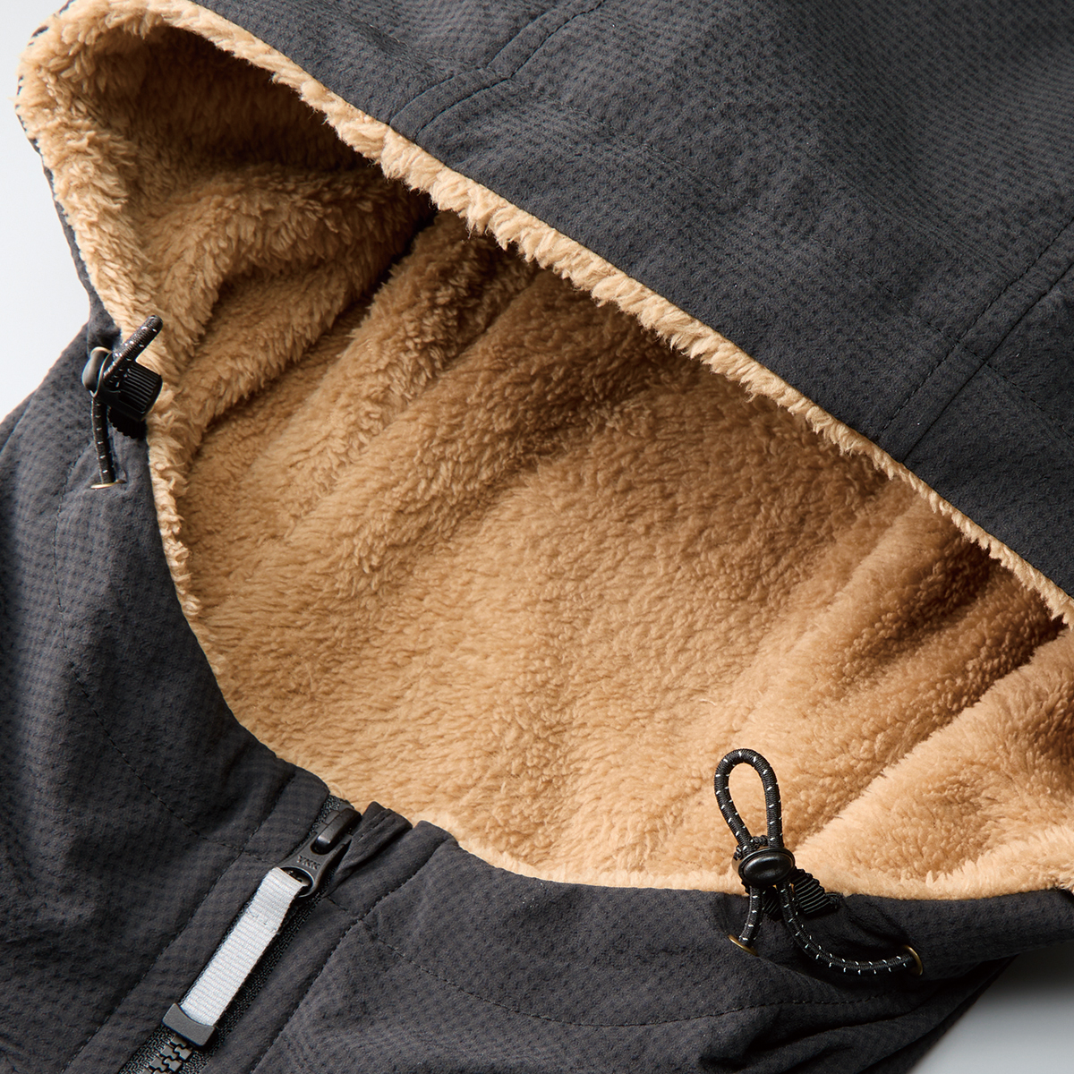 ボアフリースと防風素材を組み合わせた、暖かく動きやすいハイブリッド構造