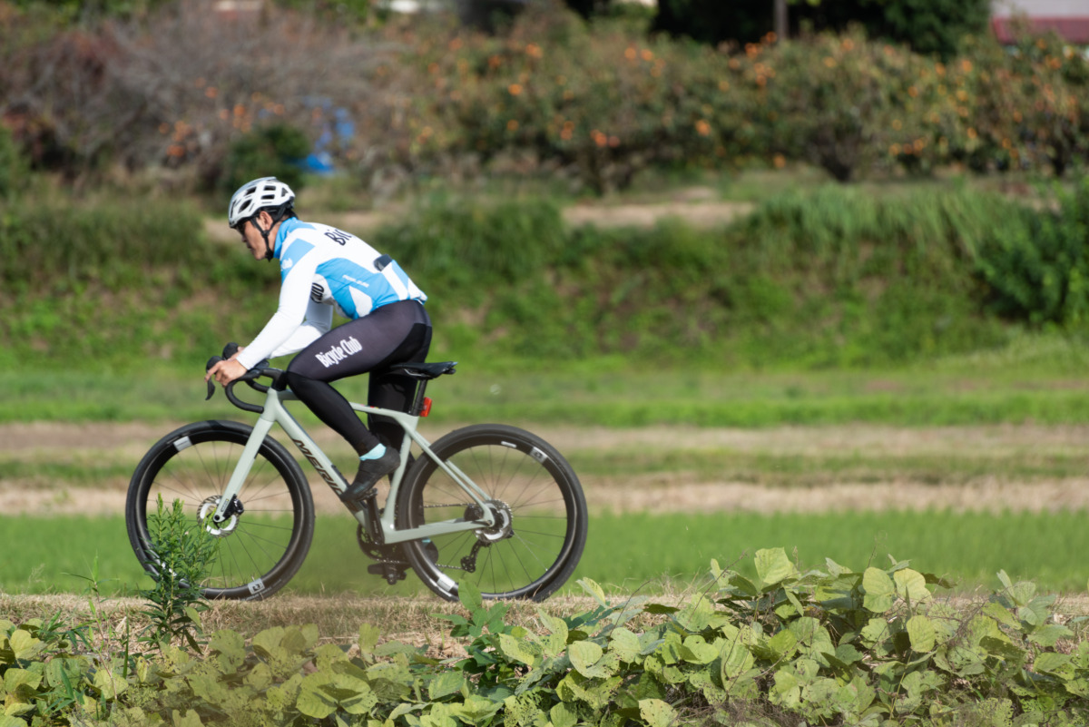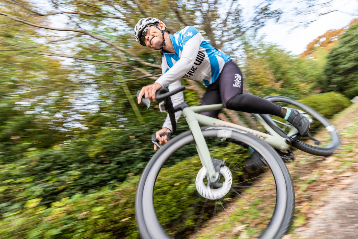こうしたミッションの性格を決めているのはジオメトリーが大きい。とくにグラベルバイクにしてはホイールベースが1009mm(XSサイズ)と短く、切り返しはかなり俊敏な印象だ。タイトなコーナーが続くシングルトラックをテンポよく駆け抜けるシーンでは、レーシンググラベルらしい機敏さが光る。ここはオンロードを走るうえでも軽快さを失わないポイントだろう。